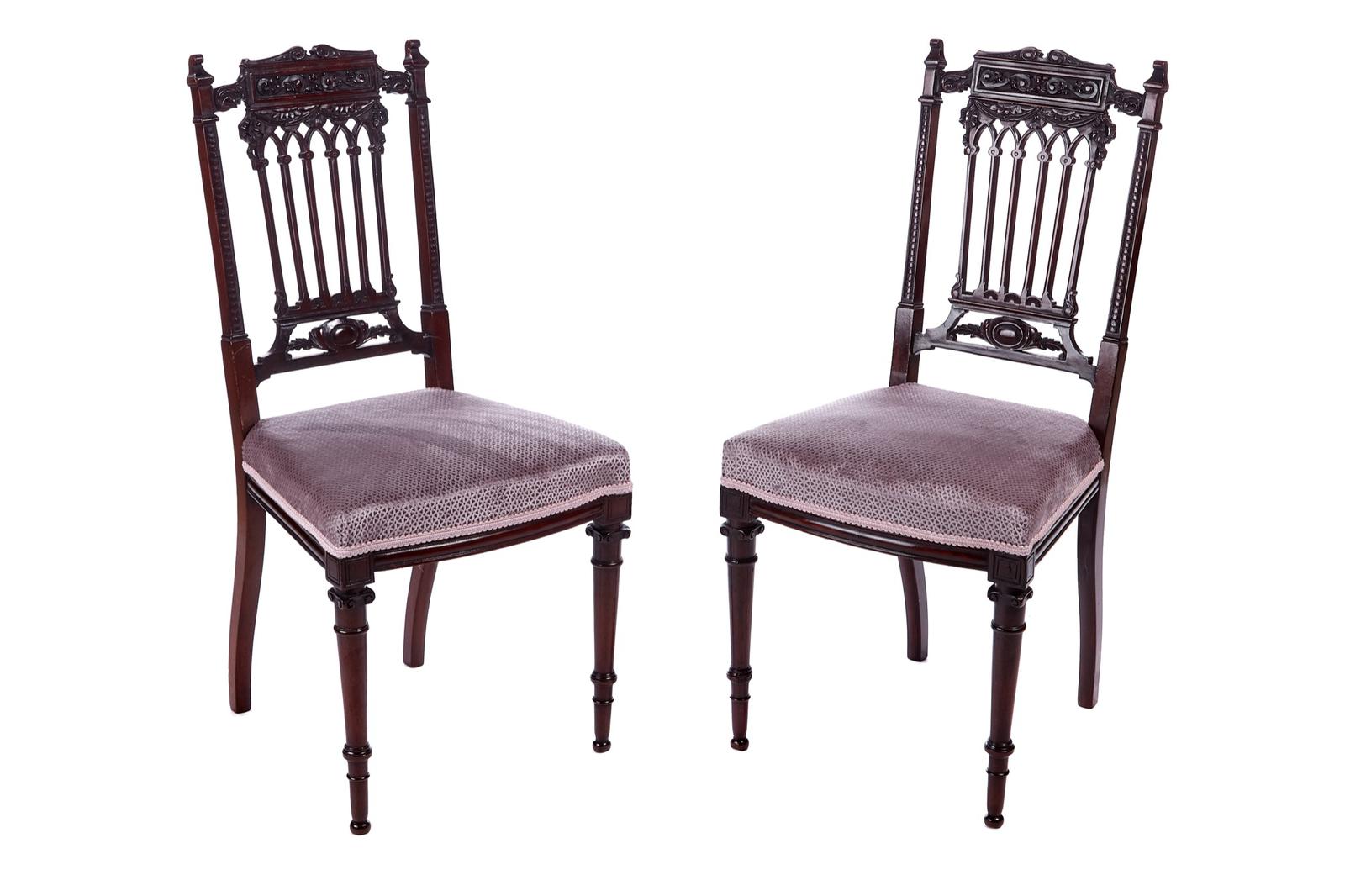 Fine Pair of Antique Victorian Carved Mahogany Side Chairs