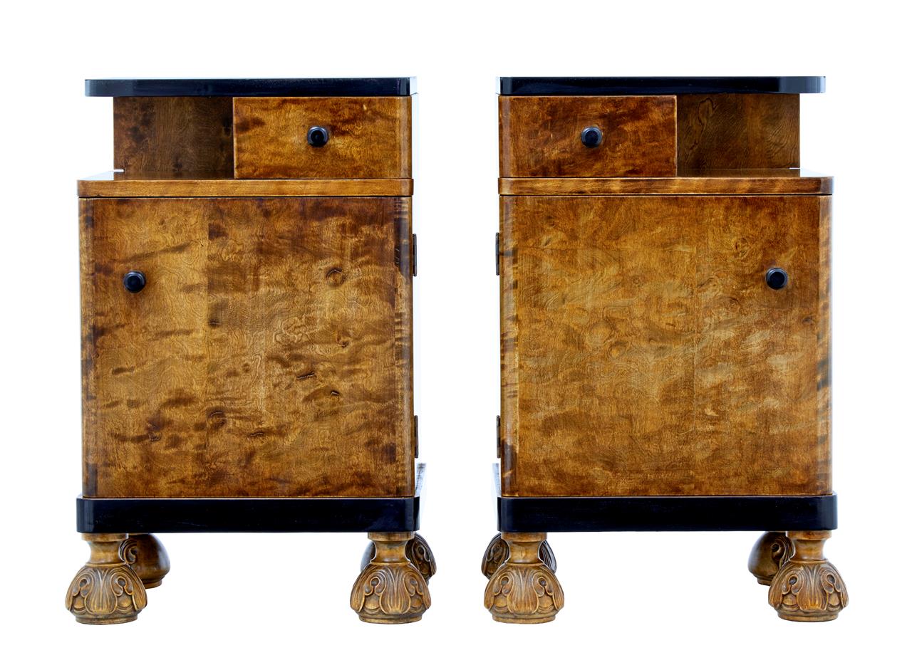 Fine Pair of Birch Art Deco Bedside Cupboards (1 of 6)