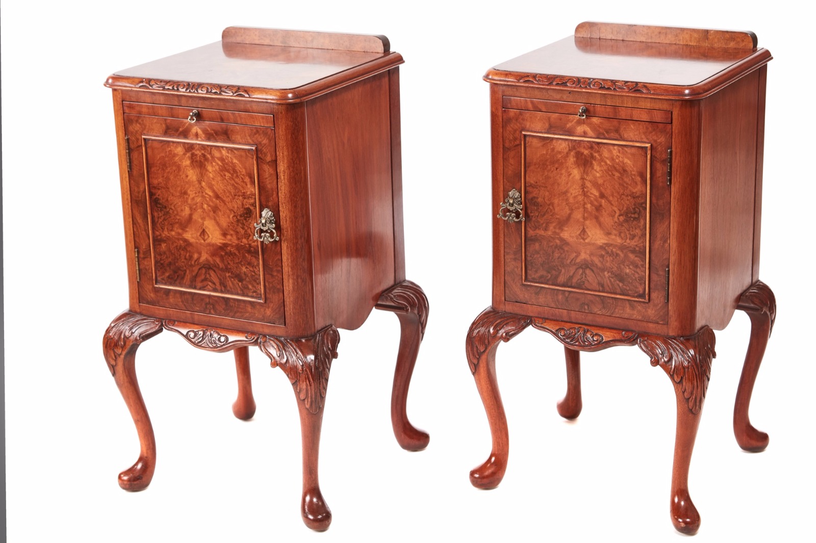 Fine Pair of Burr Walnut Bedside Cabinets c.1920