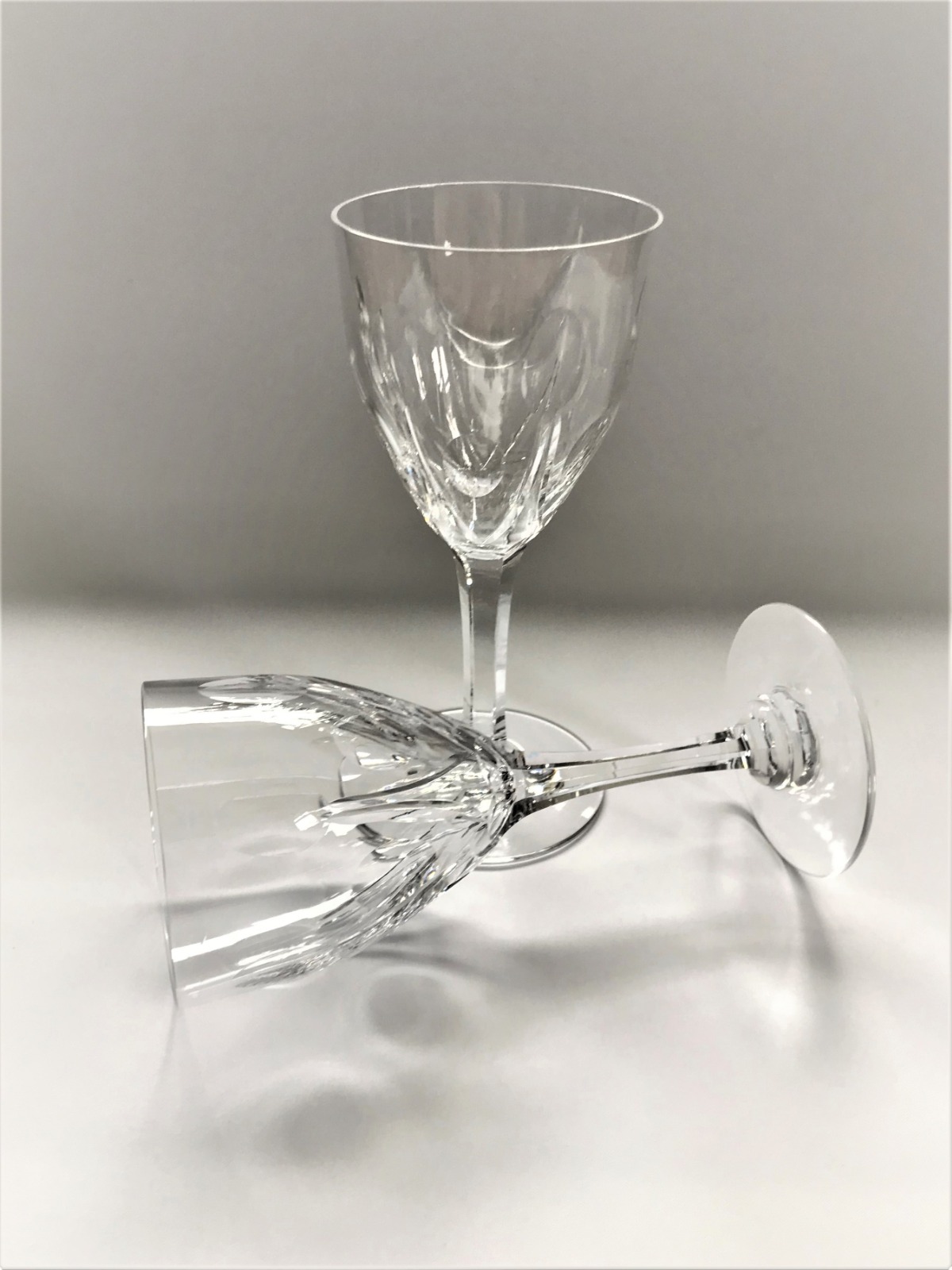 Fine Pair of Crystal Cut Glass Wine Goblets