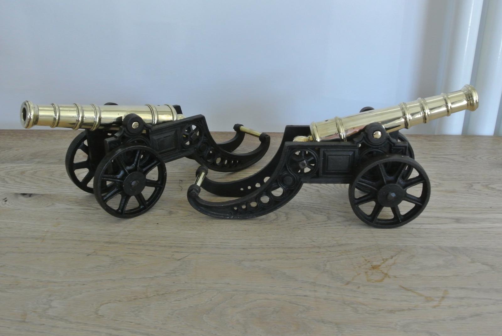 Fine Pair of Early 20th Century 18" Brass & Cast Iron Toy Cannons Hall Cannons