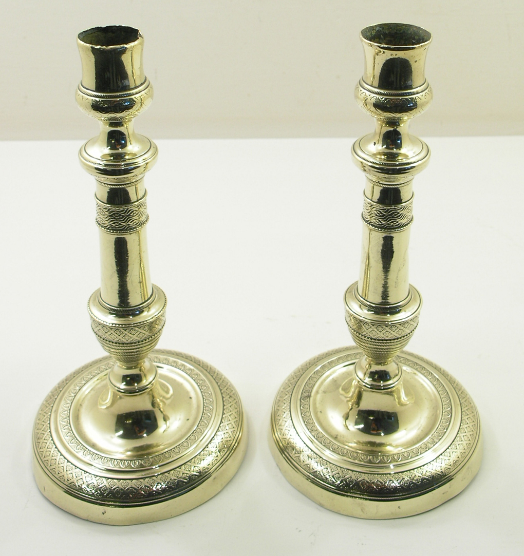 Fine Pair of Early French Brass Candlesticks c.1820 (1 of 1)
