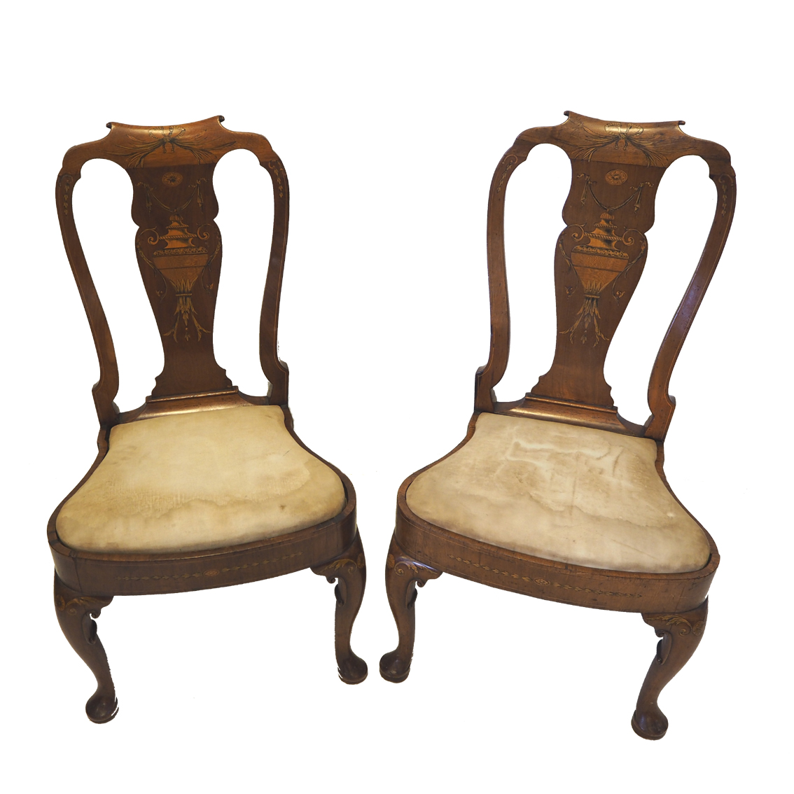 Fine Pair of George I Walnut & Marquetry Chairs c.1725