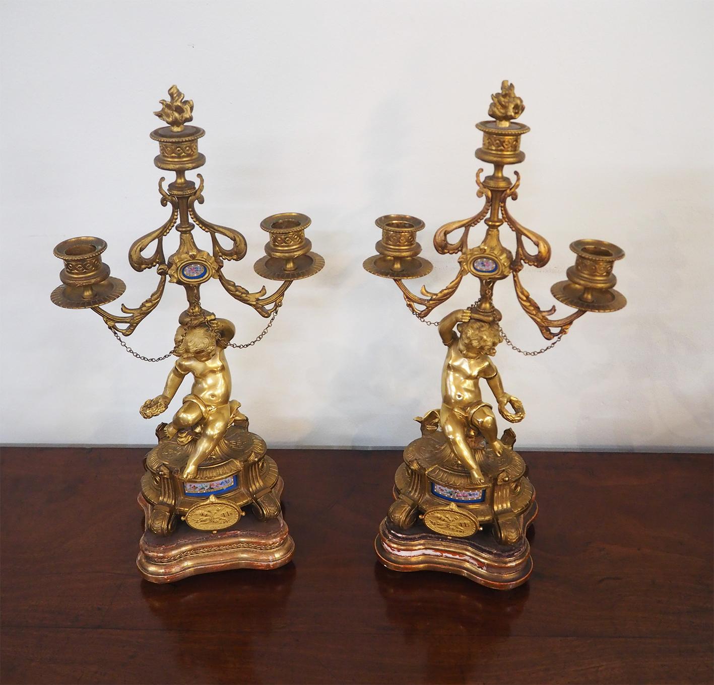 Fine Pair of Gilded Bronze Candelabra
