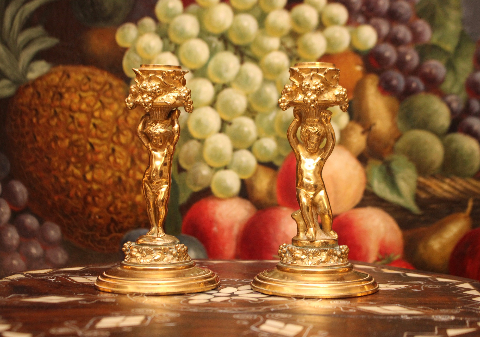 Fine Pair of Gilt Bronze Candlesticks by F. Barbedienne, Late 19th Century