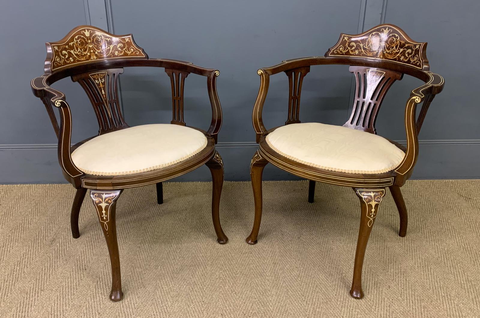 Fine Pair of Inlaid Mahogany Armchairs