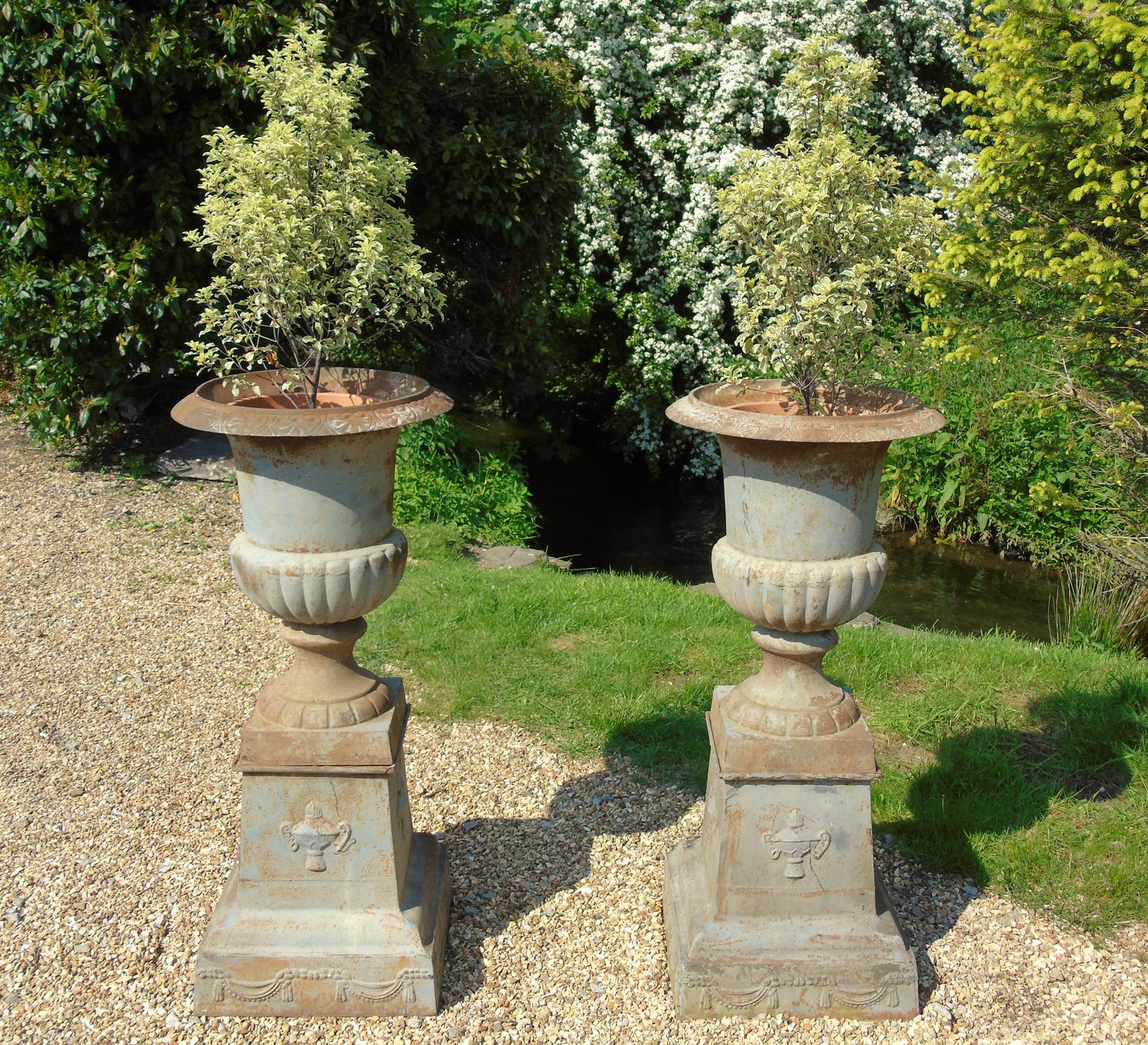 Fine Pair of Large 19th Century Campana Urns on Stands Garden Cast Iron (1 of 12)