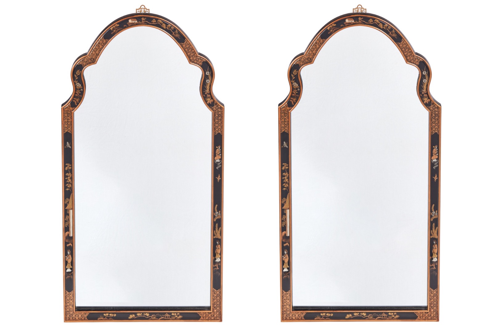 Fine Pair of Large Chinoiserie Lacquered Decorated Wall Mirrors c.1920