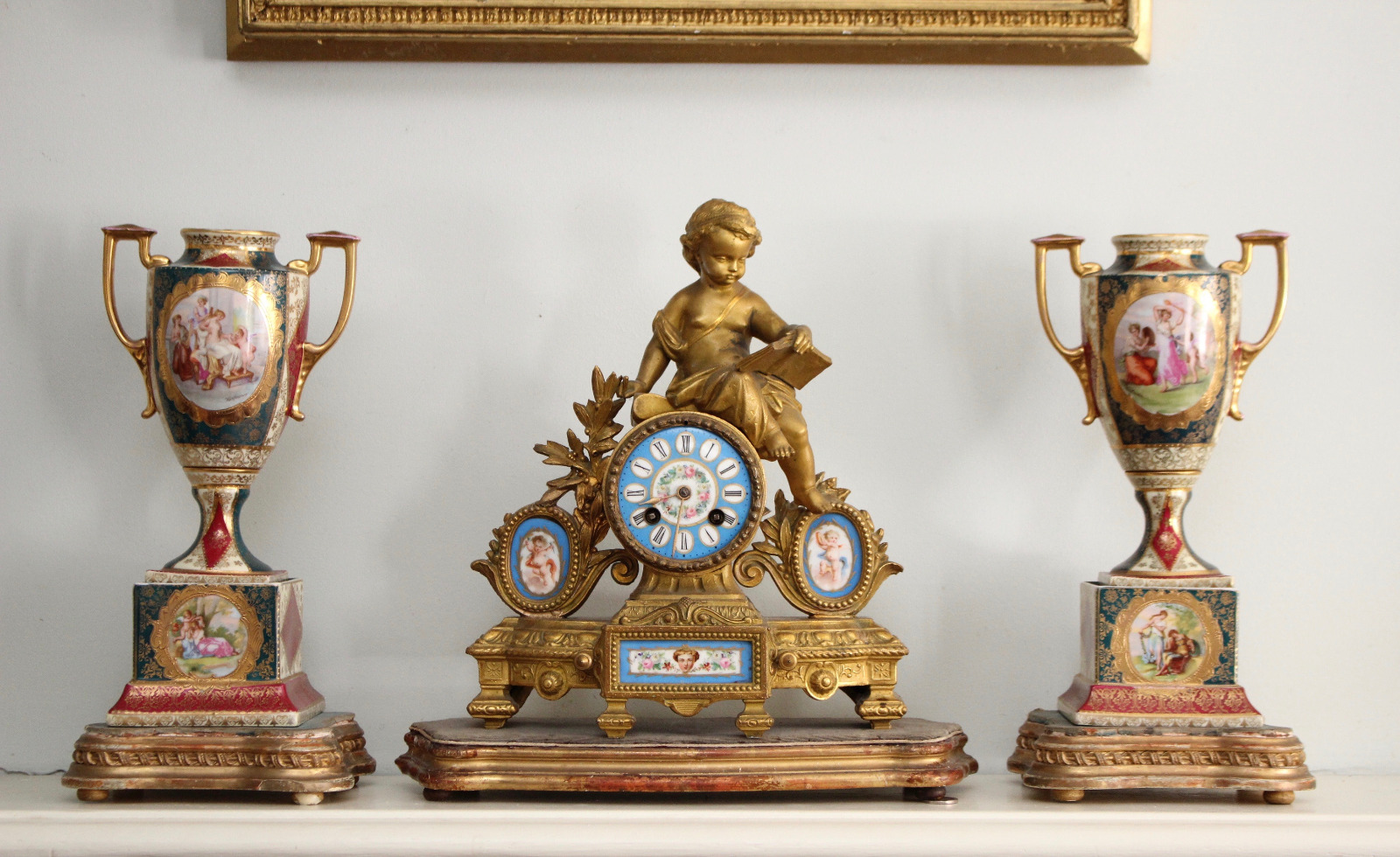 Fine Pair of Late 19th Century Antique Ceramic Urns, Gilt Handles, Figural Panels