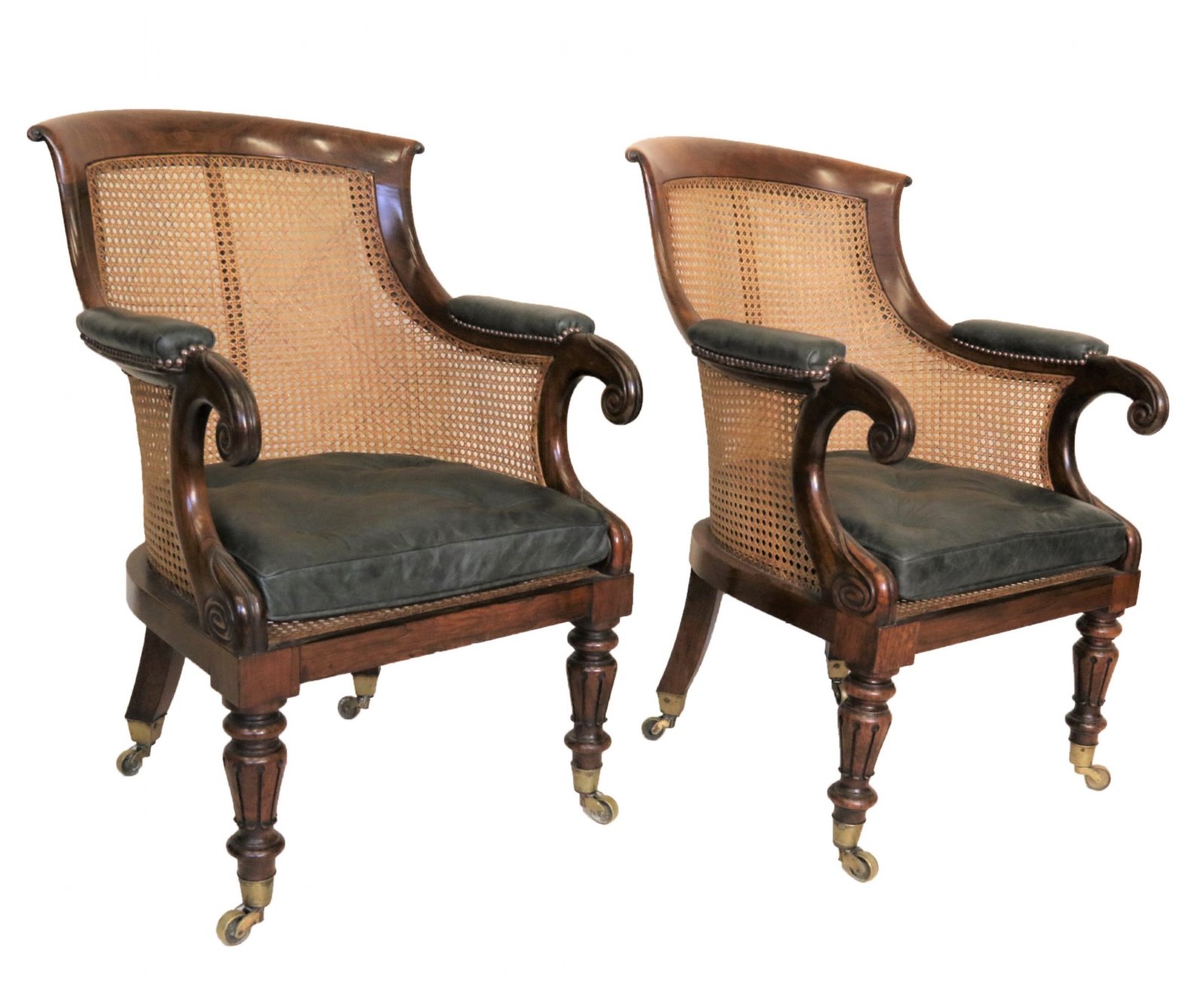 Fine Pair of Late Regency Bergère Library Armchairs