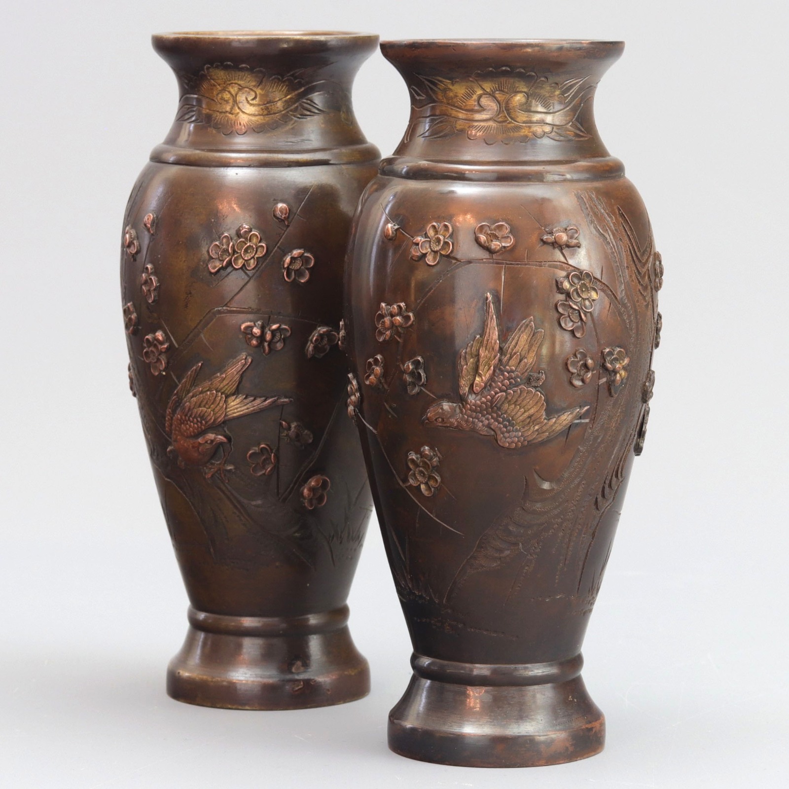 Fine Pair of Meiji Period Japanese Bronze Vases with Applied Decoration c.1880