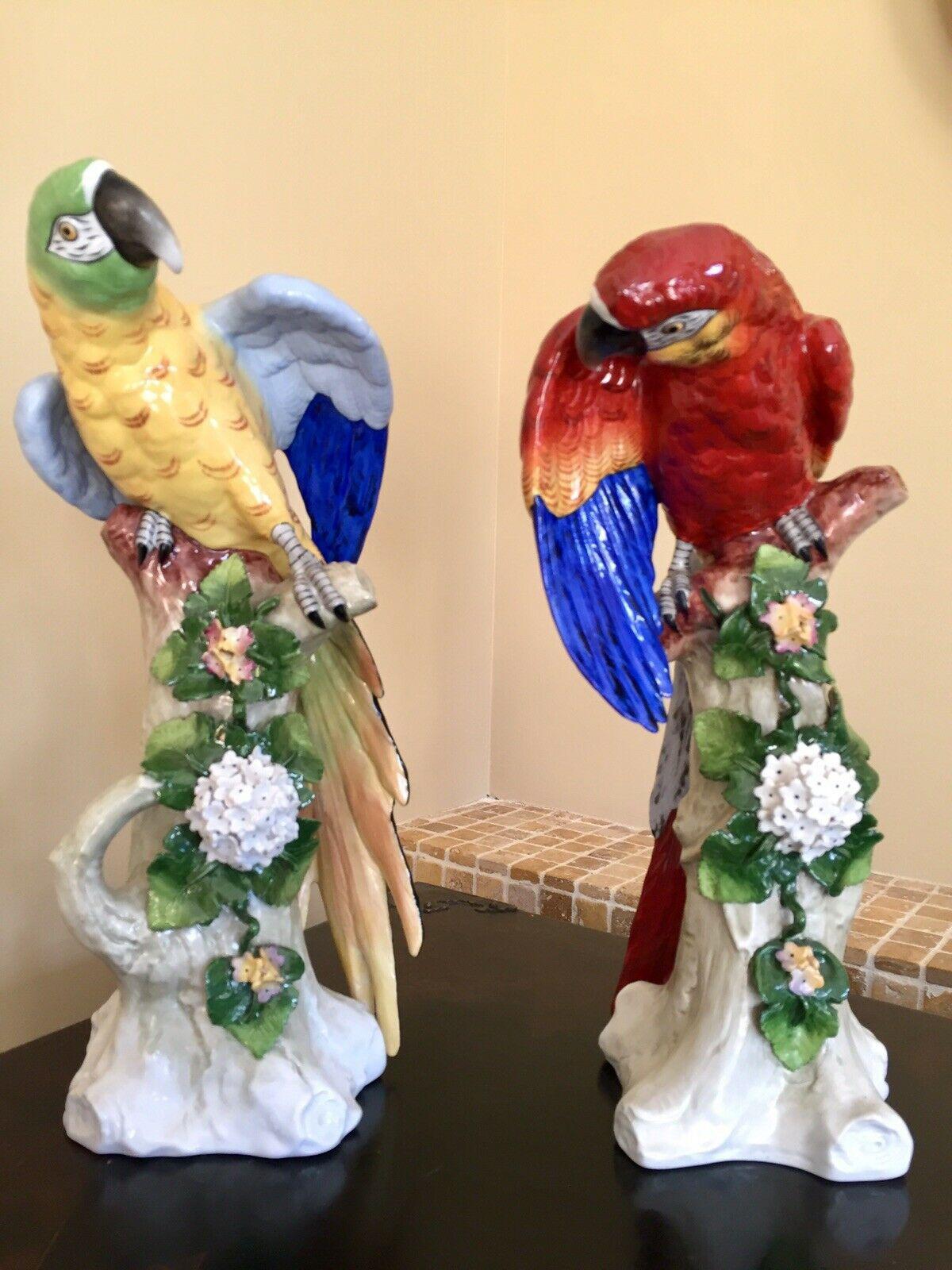 Fine Pair of Porcelain Sitzendorf Parrots or Macaws
