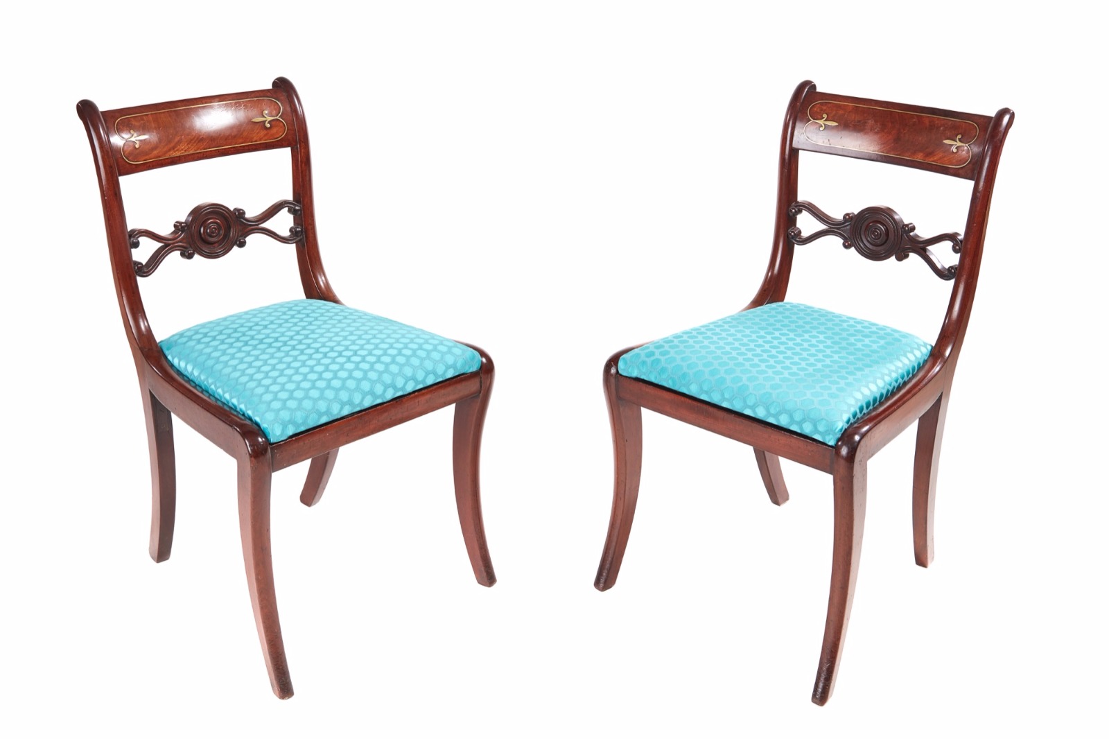Fine Pair of Regency Mahogany Brass Inlaid Chairs c.1815