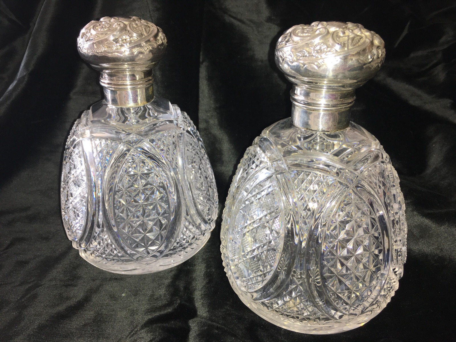 Fine Pair of Silver Mounted Crystal Scent / Cologne Bottles Birmingham 1905