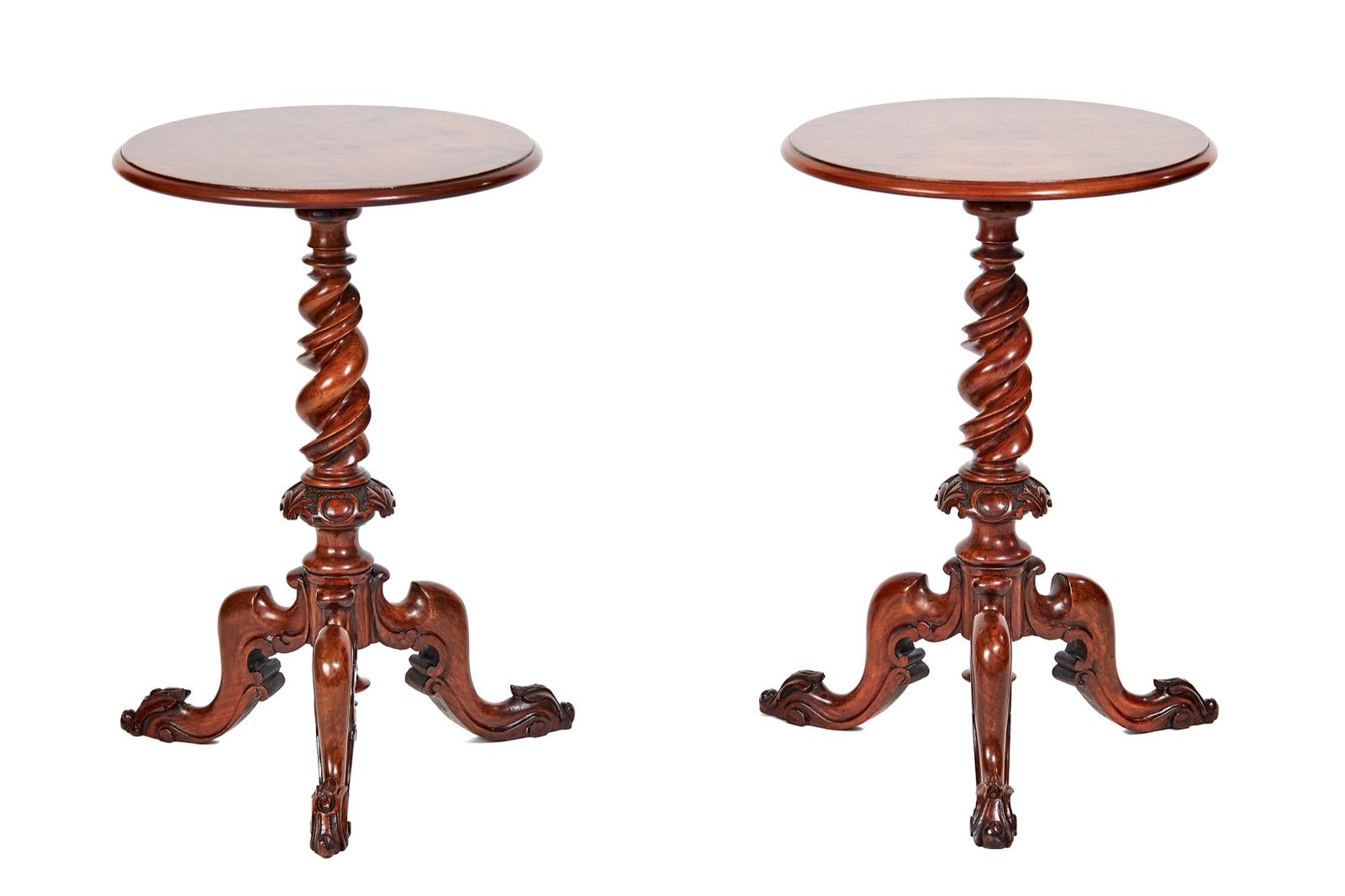 Fine Pair of Victorian Burr Walnut & Carved Lamp Tables