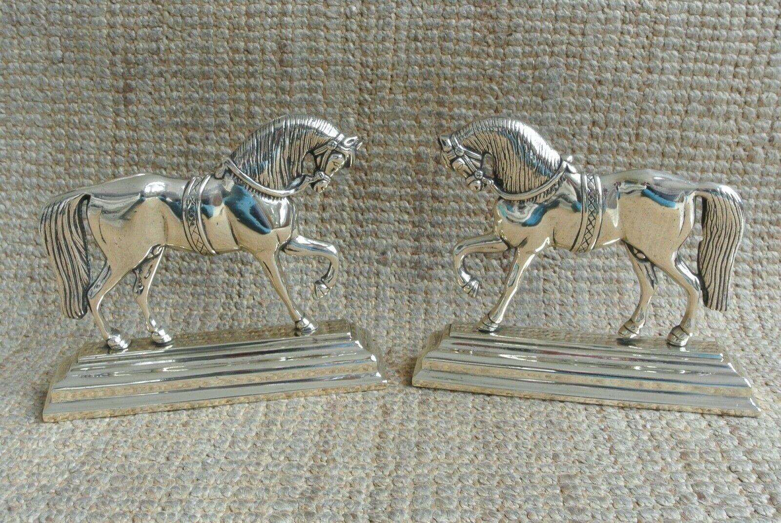 Fine Pair of Victorian Cast Brass Horse Hearth Ornaments Door Stop Door Porter