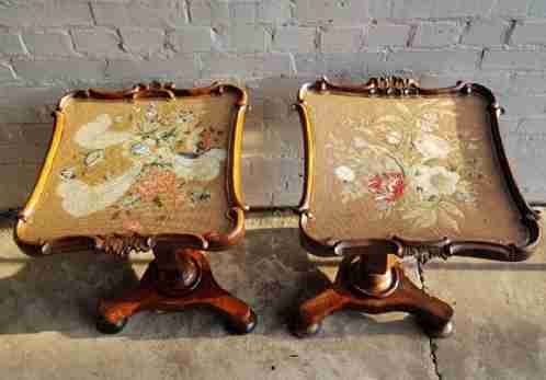 Fine Pair of Victorian Rosewood Tapestry Topped Side Tables