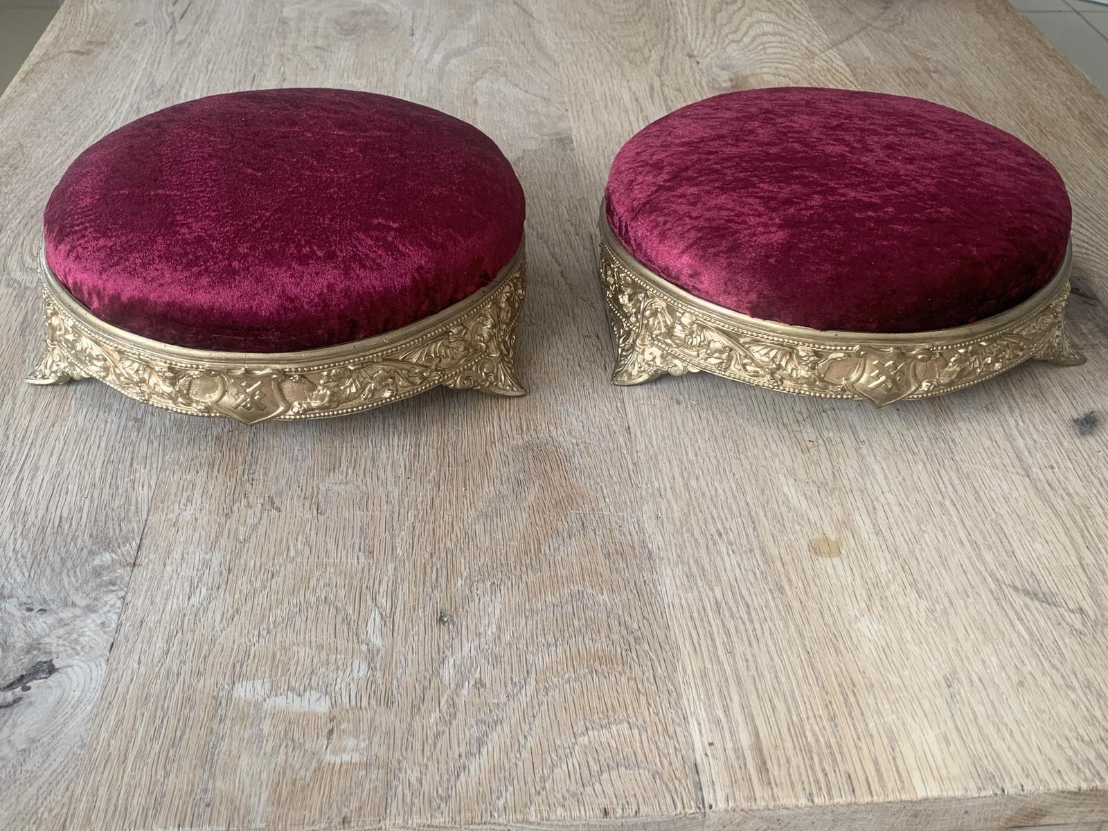 Fine Pair of William Tonks Brass Foot Stools Reg 1866 Original Gilt Type Finish