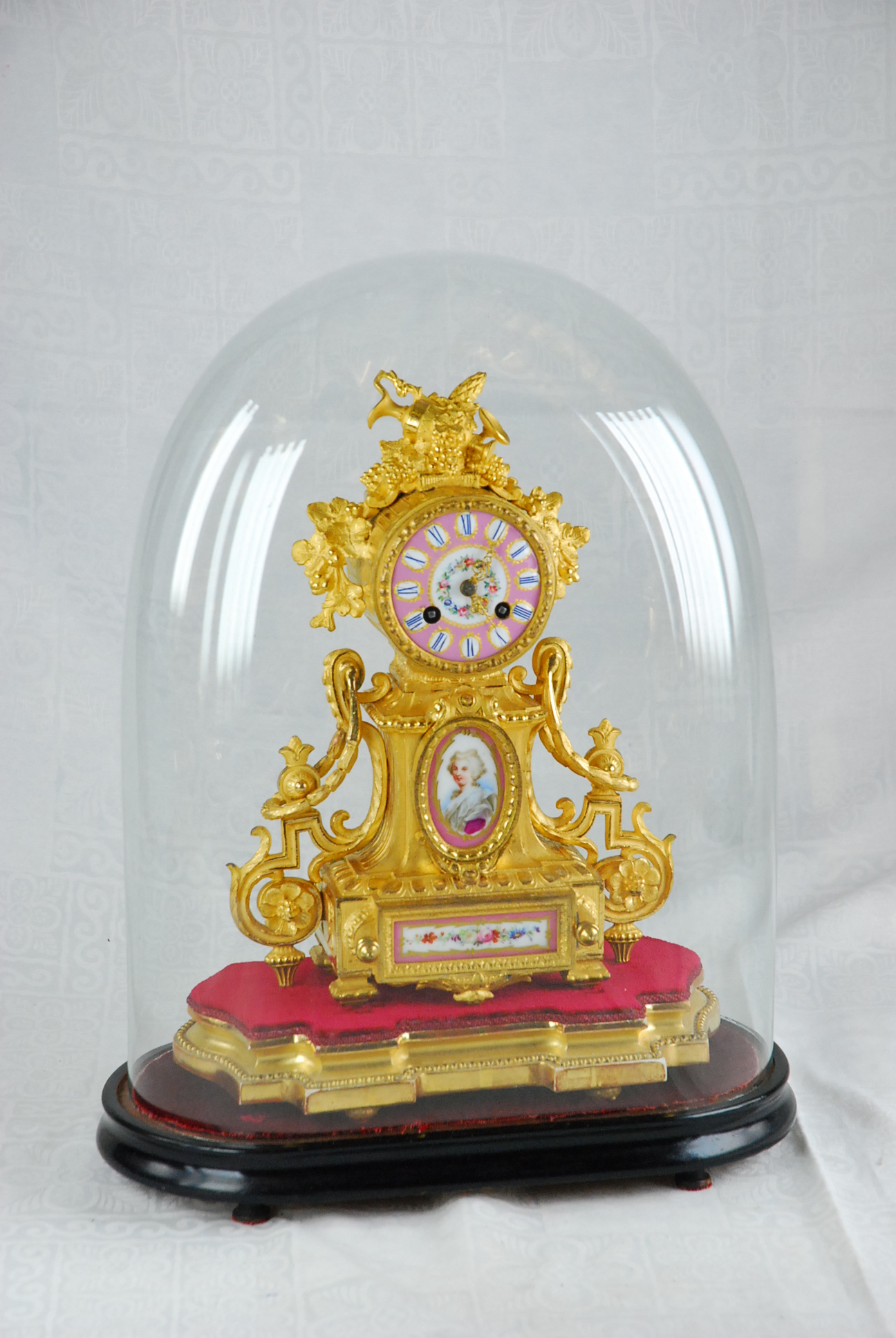 Fine Porcelain Sevres Style Gilt metal Antique Mantel Clock c.1880