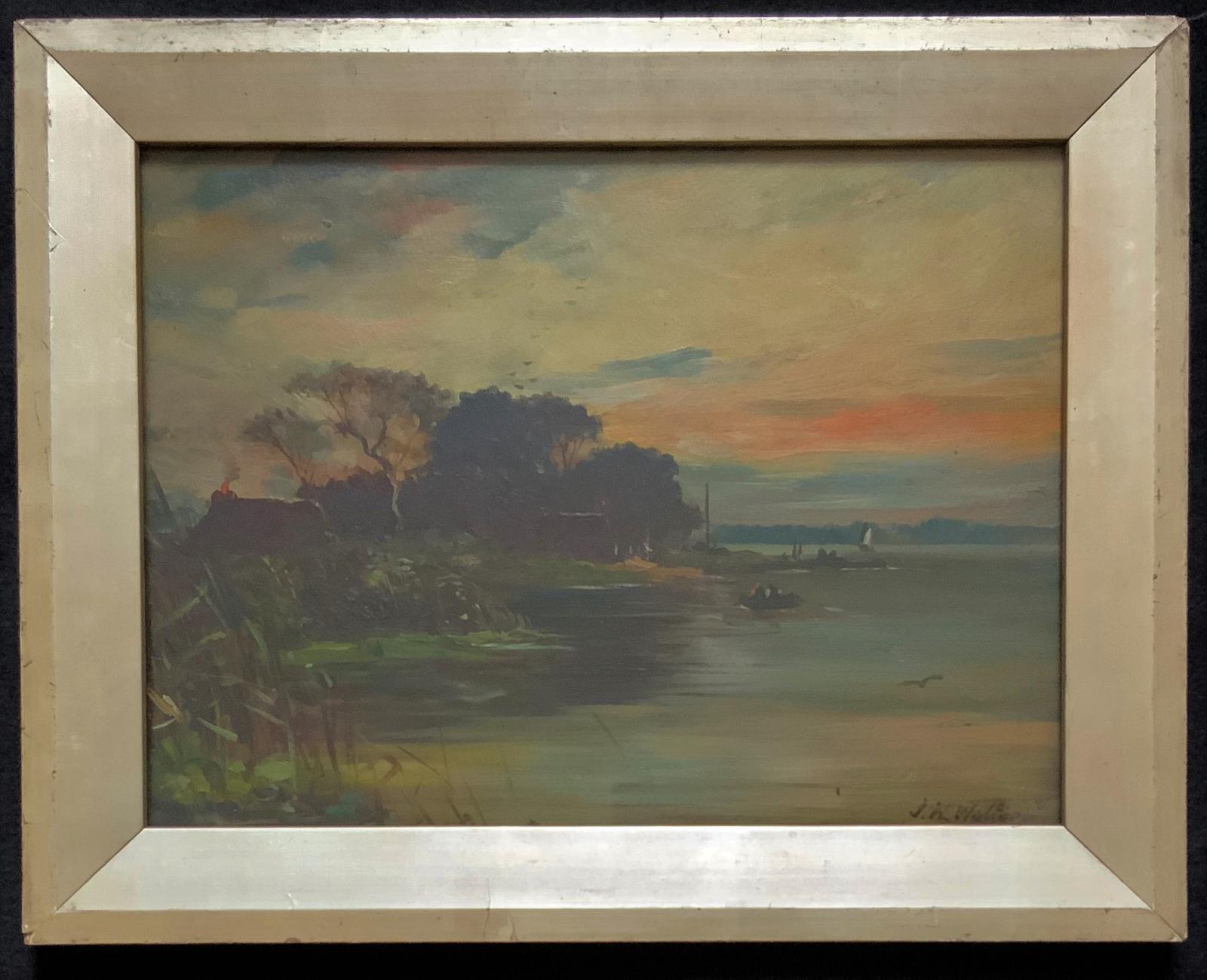 Fine Quality 19th Century Country River Landscape Oil on Board Painting