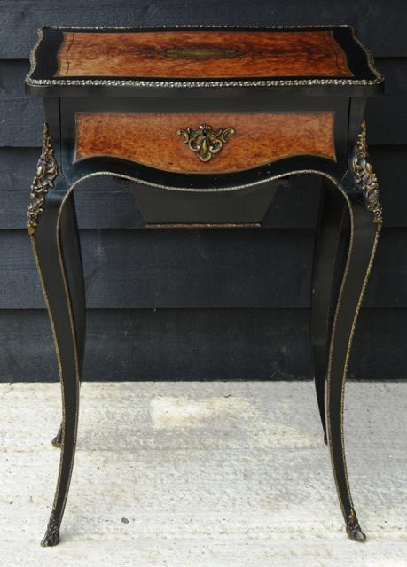 Fine Quality 19th Century French Ebonised & Amboyna Serpentine Sewing Table