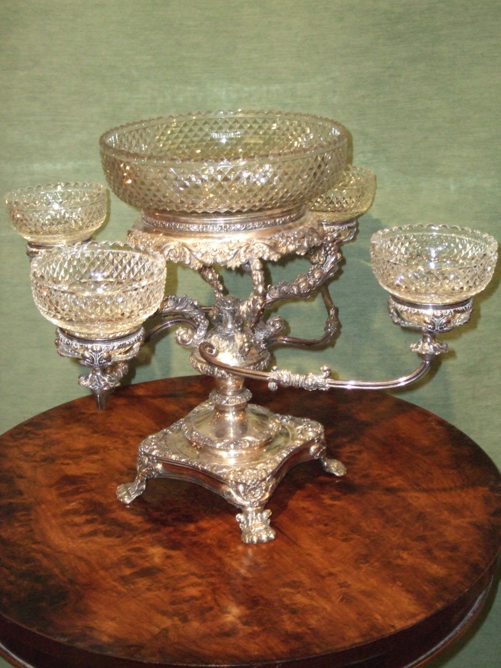 Fine Quality 19th Century Sheffield Plate & Crystal Table Centre Piece