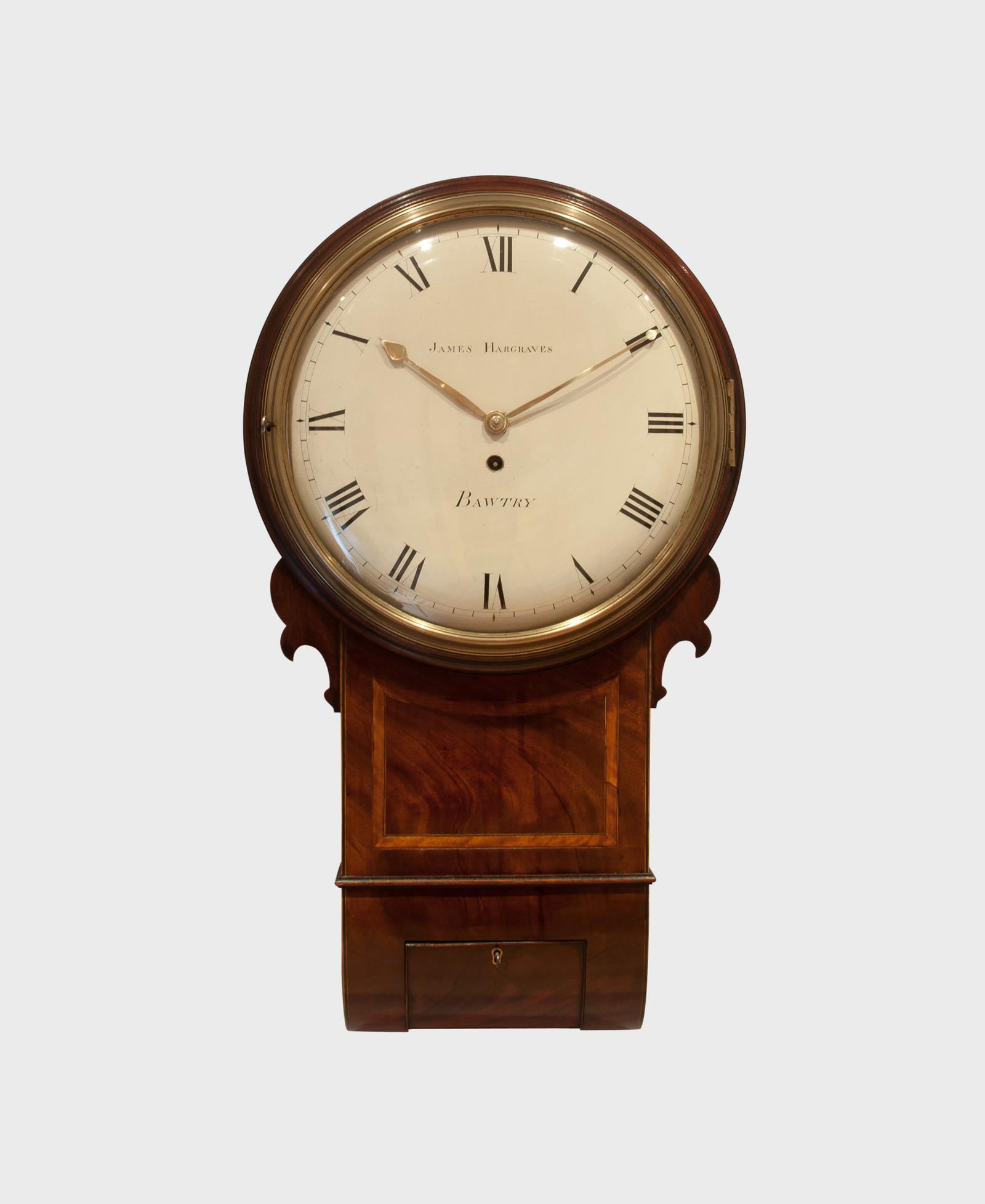 Fine quality 8 day English fusee timepiece trunk dial wall clock by James Hargraves of Bawtry c 1820