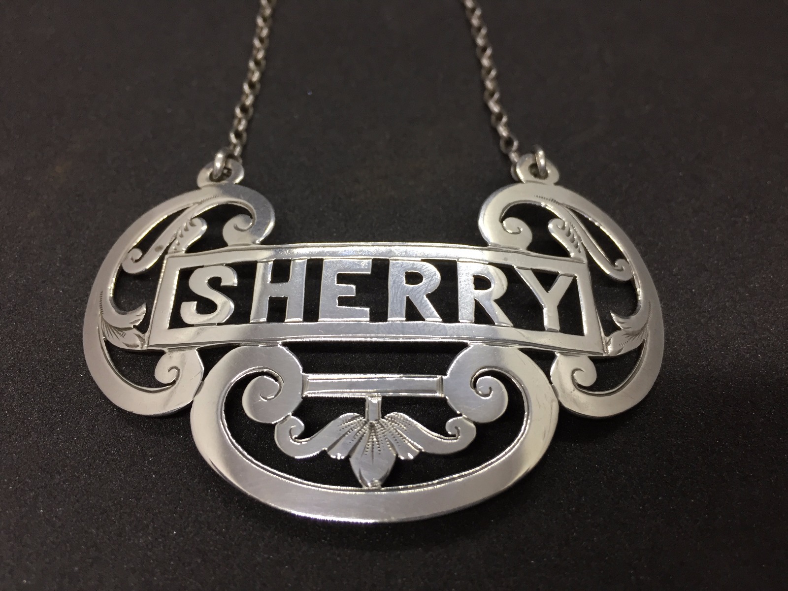 Fine Quality Antique Edwardian Open Work Silver Sherry Decanter Label, Lawrence Emanuel, Birmingham 1909