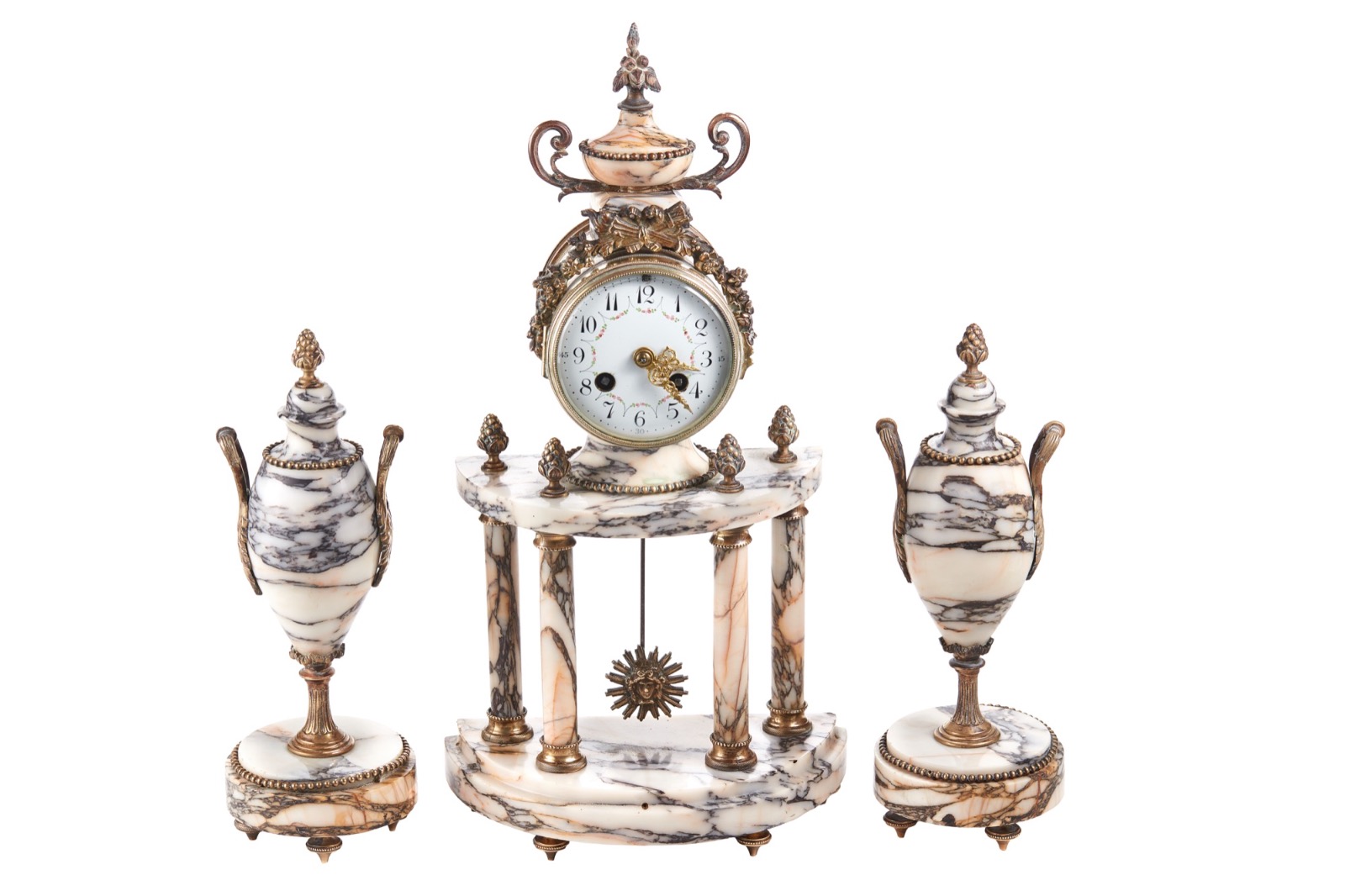 Fine Quality Antique French Marble & Gilt Metal Clock Garniture