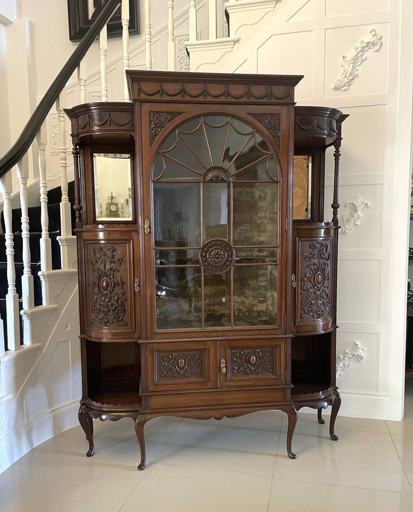 Fine Quality Antique Victorian Carved Mahogany Display Cabinet