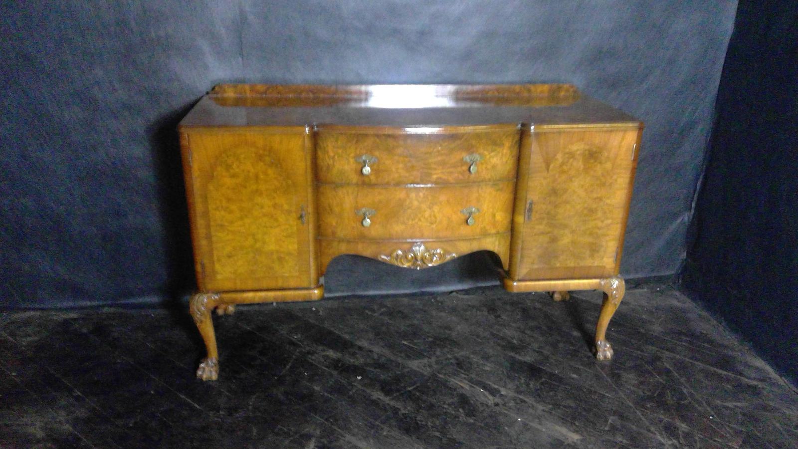 Fine Quality Berefords & Hicks Elegant Figured Burr Walnut Queen Anne Style Sideboard on Carved Cabriole Legs