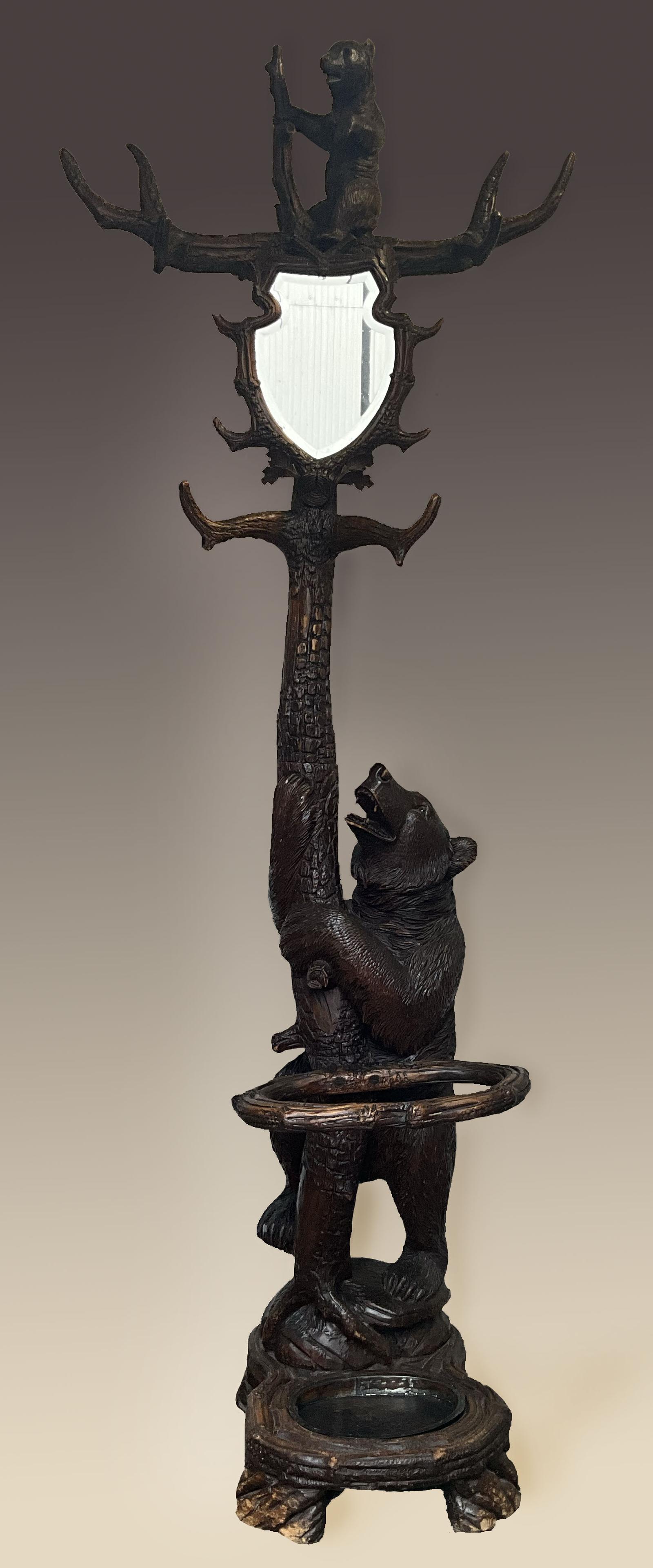 Fine Quality Black Forest Bear Carved Wood Hall Stand