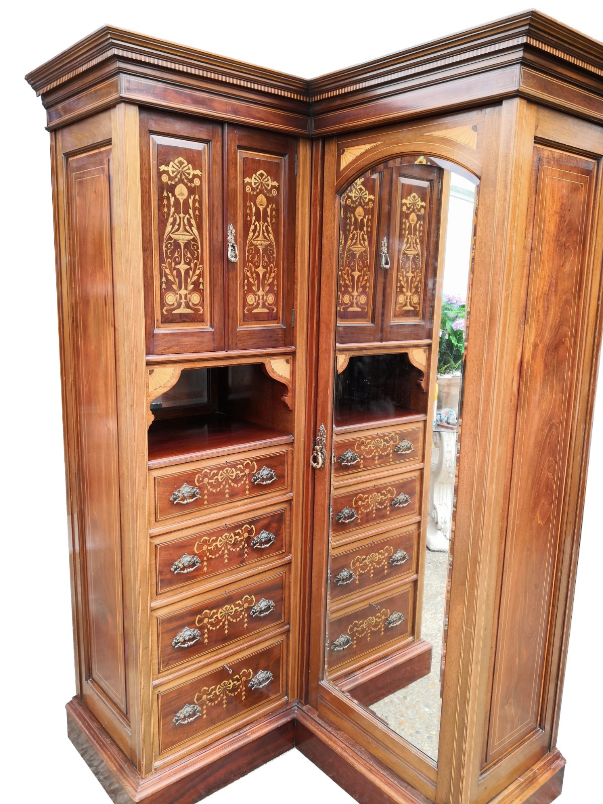 Fine Quality Corner Wardrobe Marquetry Woof & Witaker c.1860