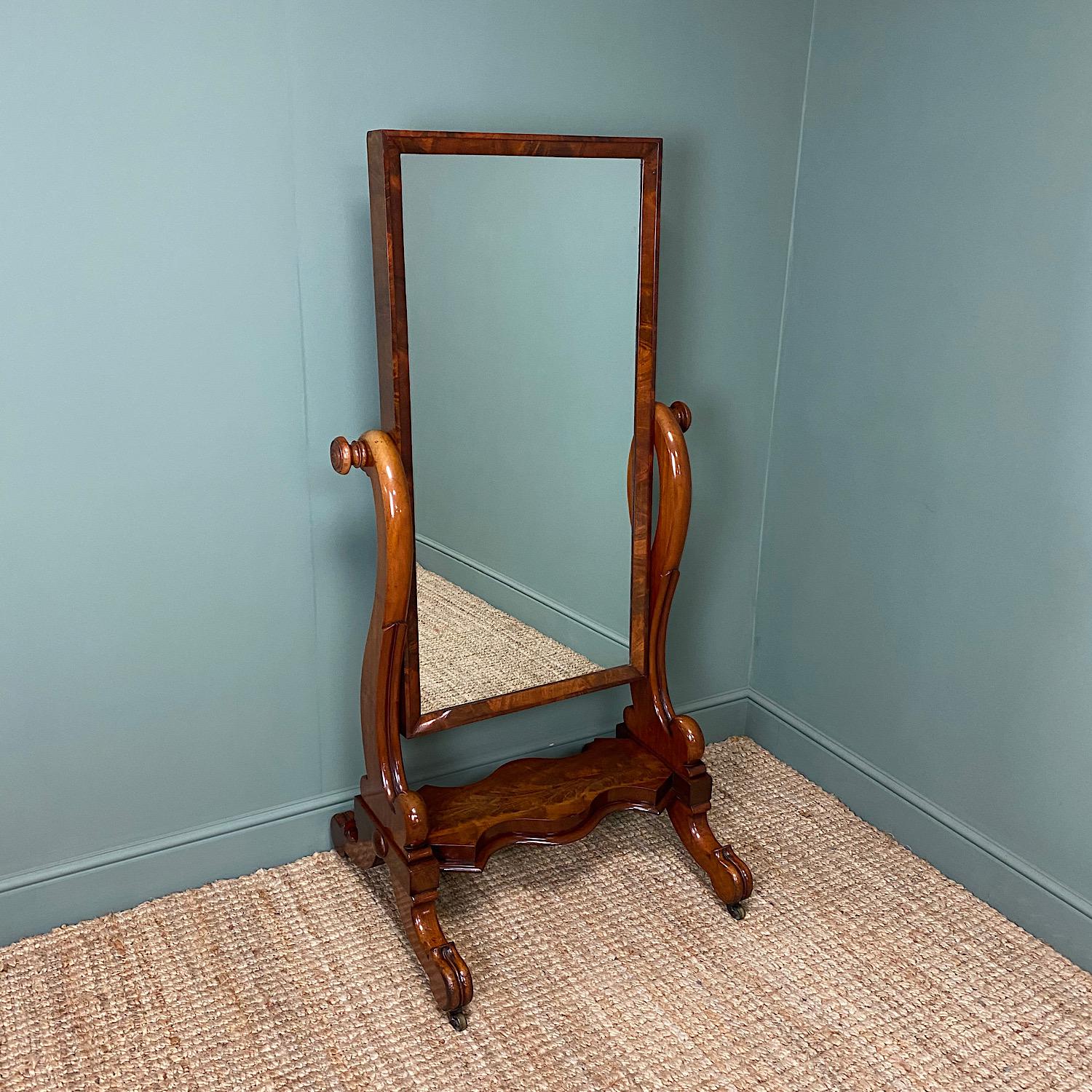 Fine Quality Figured Mahogany Victorian Antique Cheval Mirror