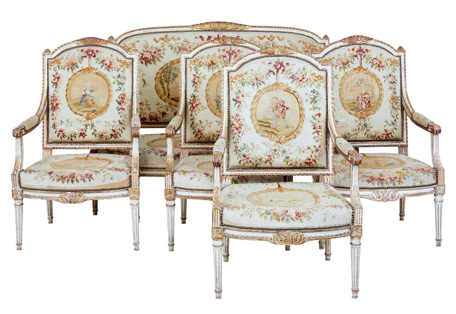 Fine Quality Louis Philippe I Period 5 Piece Tapestry Gilt Salon Suite