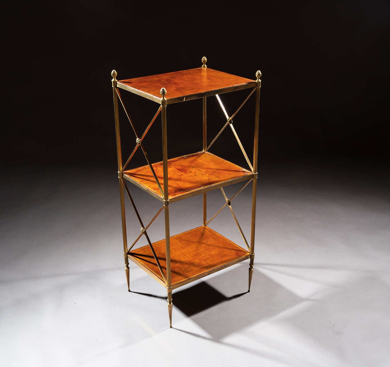 Fine Quality Mid-Century Brass & Leather Three Tier Etagere (1 of 1)