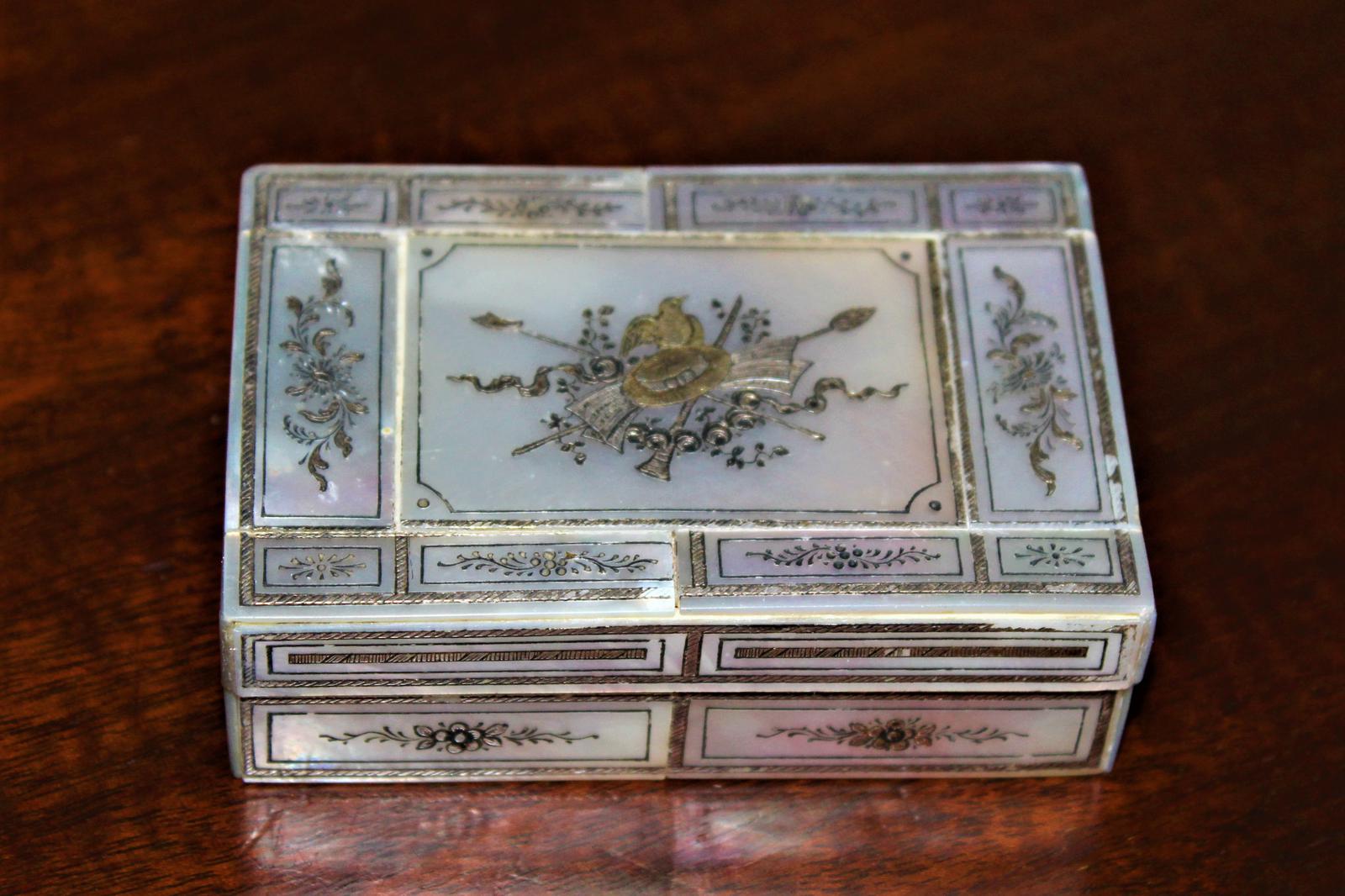Fine quality mother-of-pearl box with a finely engraved cartouche gilded & silvered