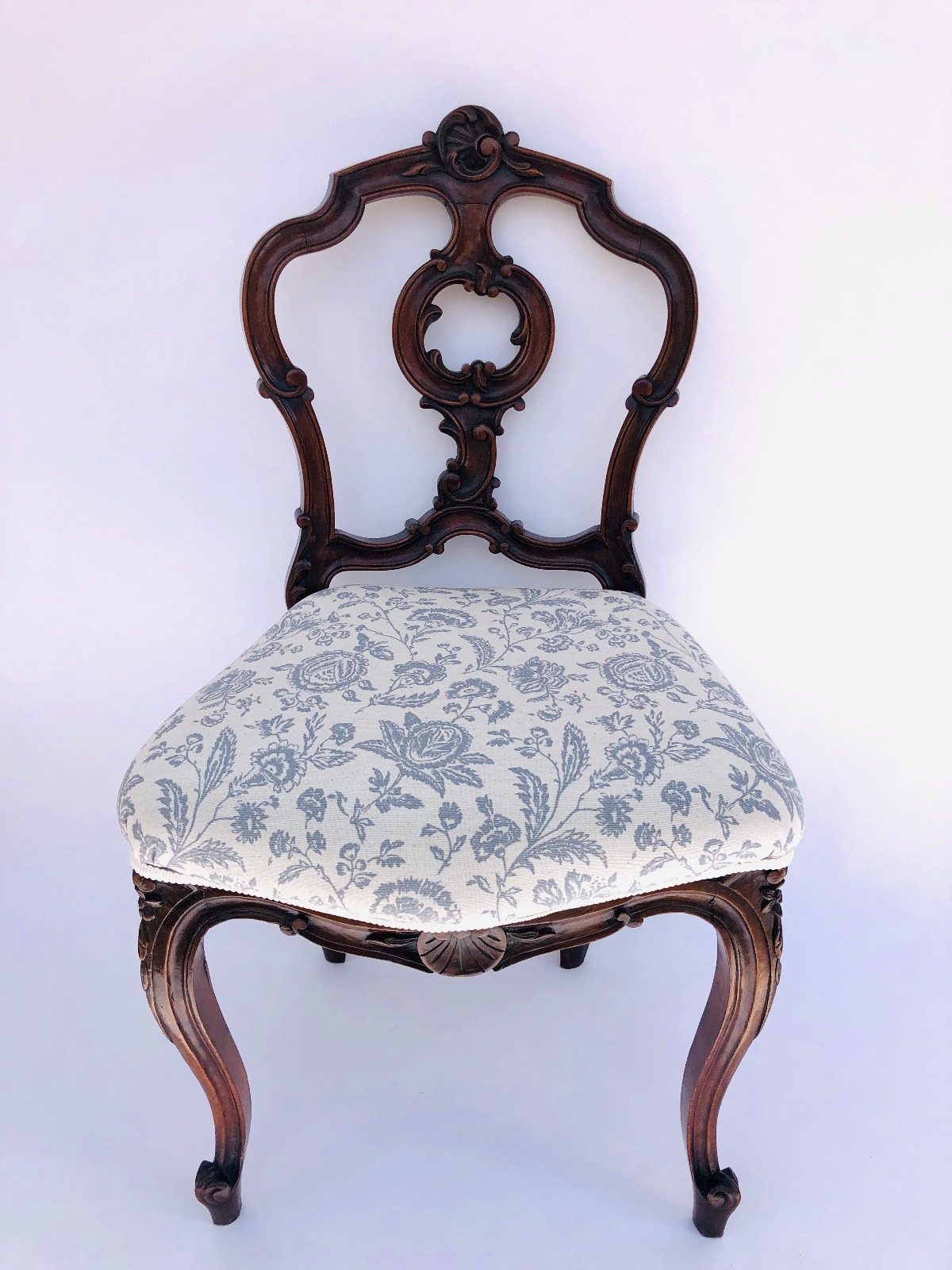 Fine Quality Pair of Antique Carved Walnut Side / Desk Chairs
