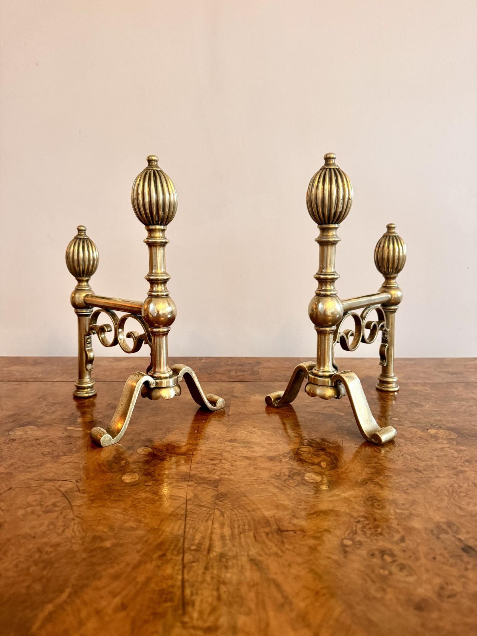This Fine Quality Pair of Antique Georgian Brass Fire Dogs is located in Suffolk, United Kingdom
