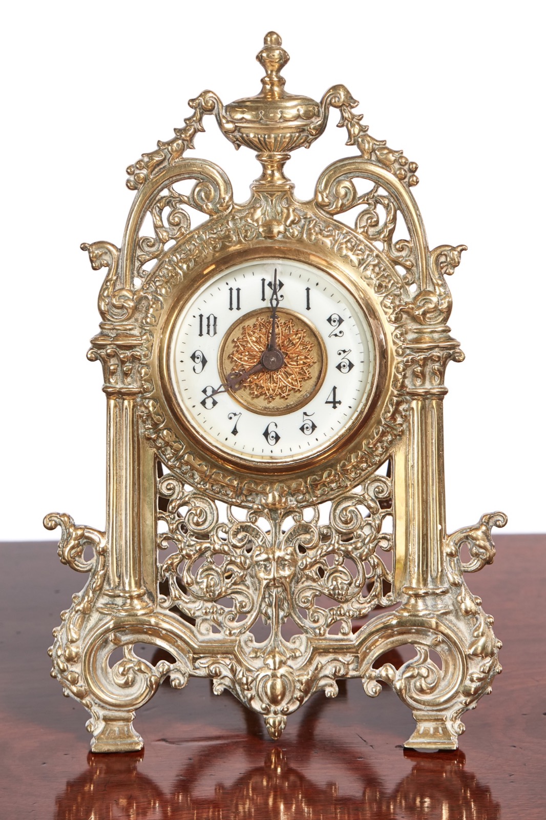 Fine Quality Pierced Brass Easel Back Desk Clock c.1880