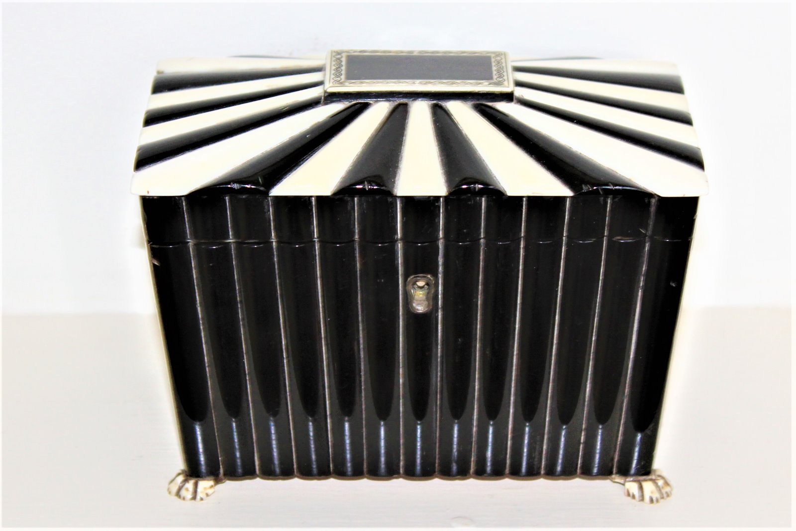 Fine Quality Ribbed Horn Anglo Indian Tea Caddy with Carved Bone Paw Feet c.1820 to 1870