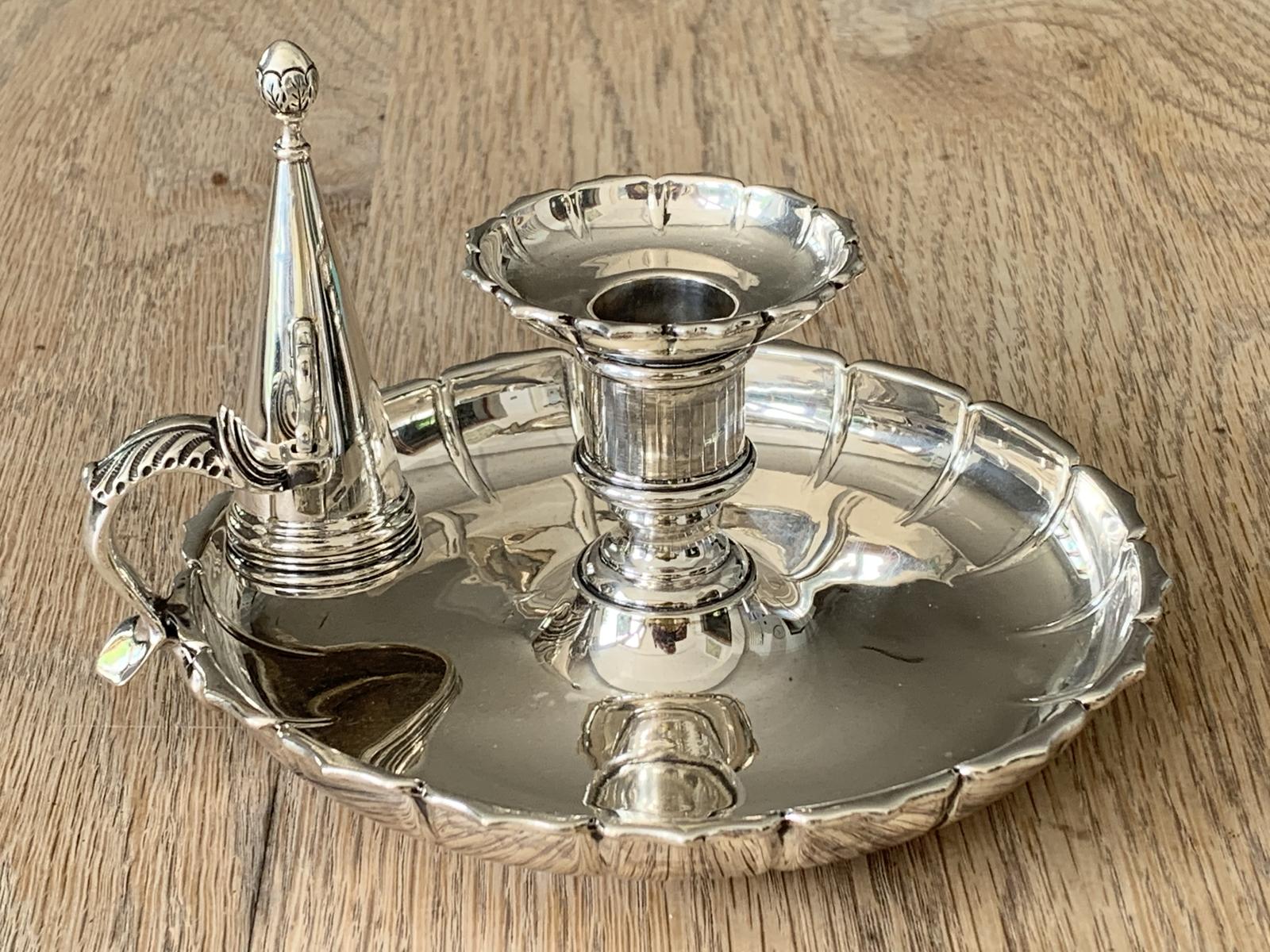 Fine & Quality Silver Chamberstick with Original Matching Snuffer Hallmarked London 1877 Maker Edward Hutton