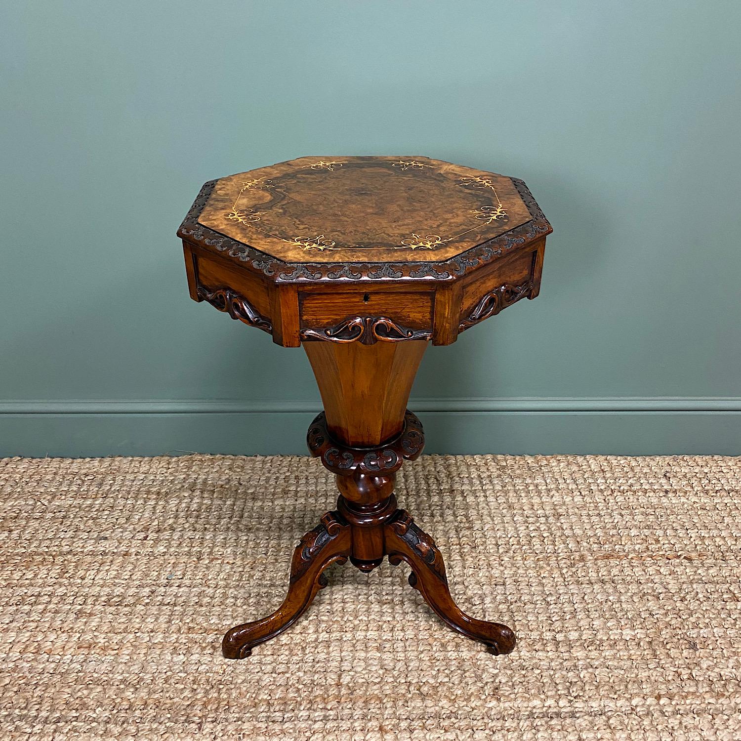 Fine Quality Victorian Figured Walnut Antique Work Box