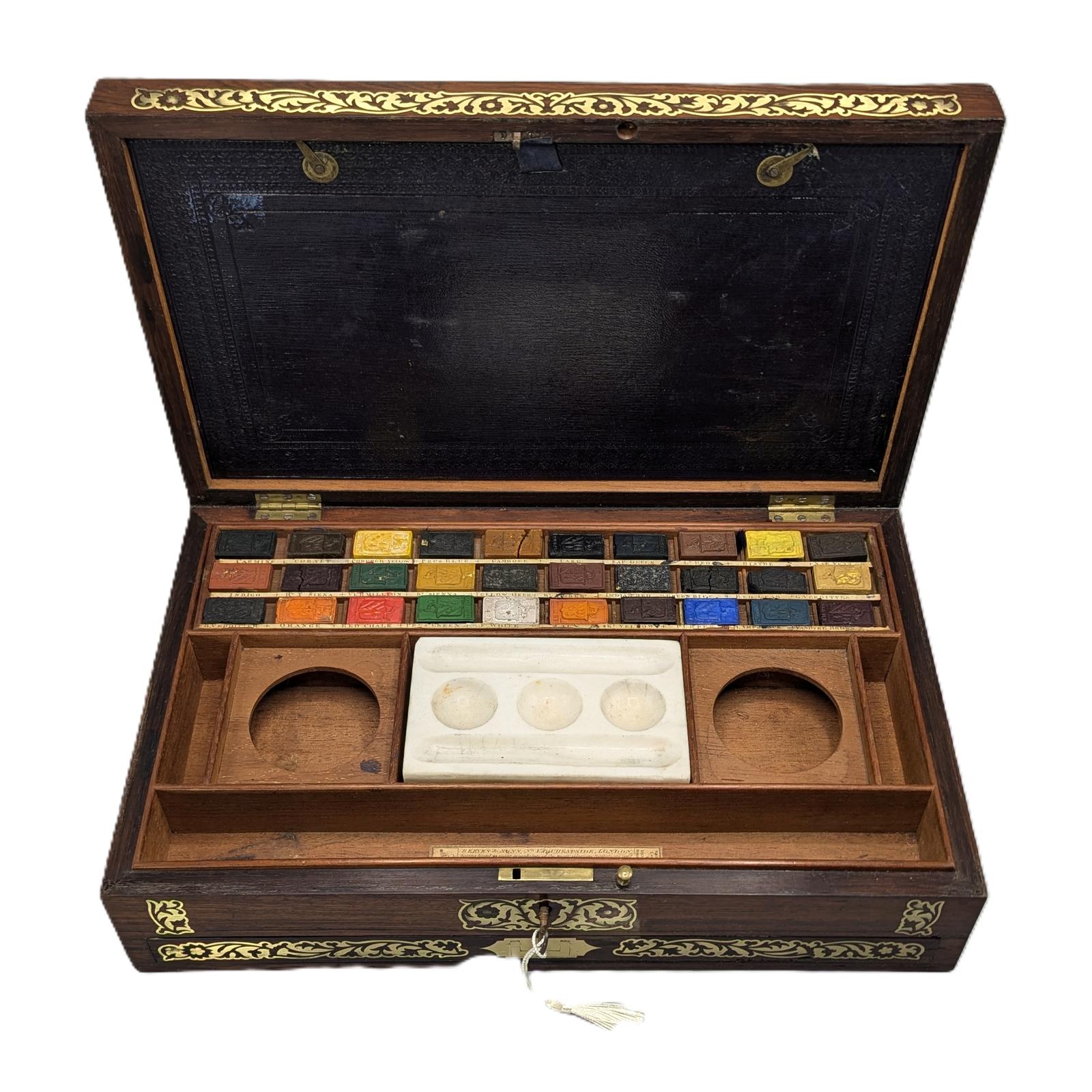 Fine Regency Rosewood & Brass Inlaid Painters Box by Reeves