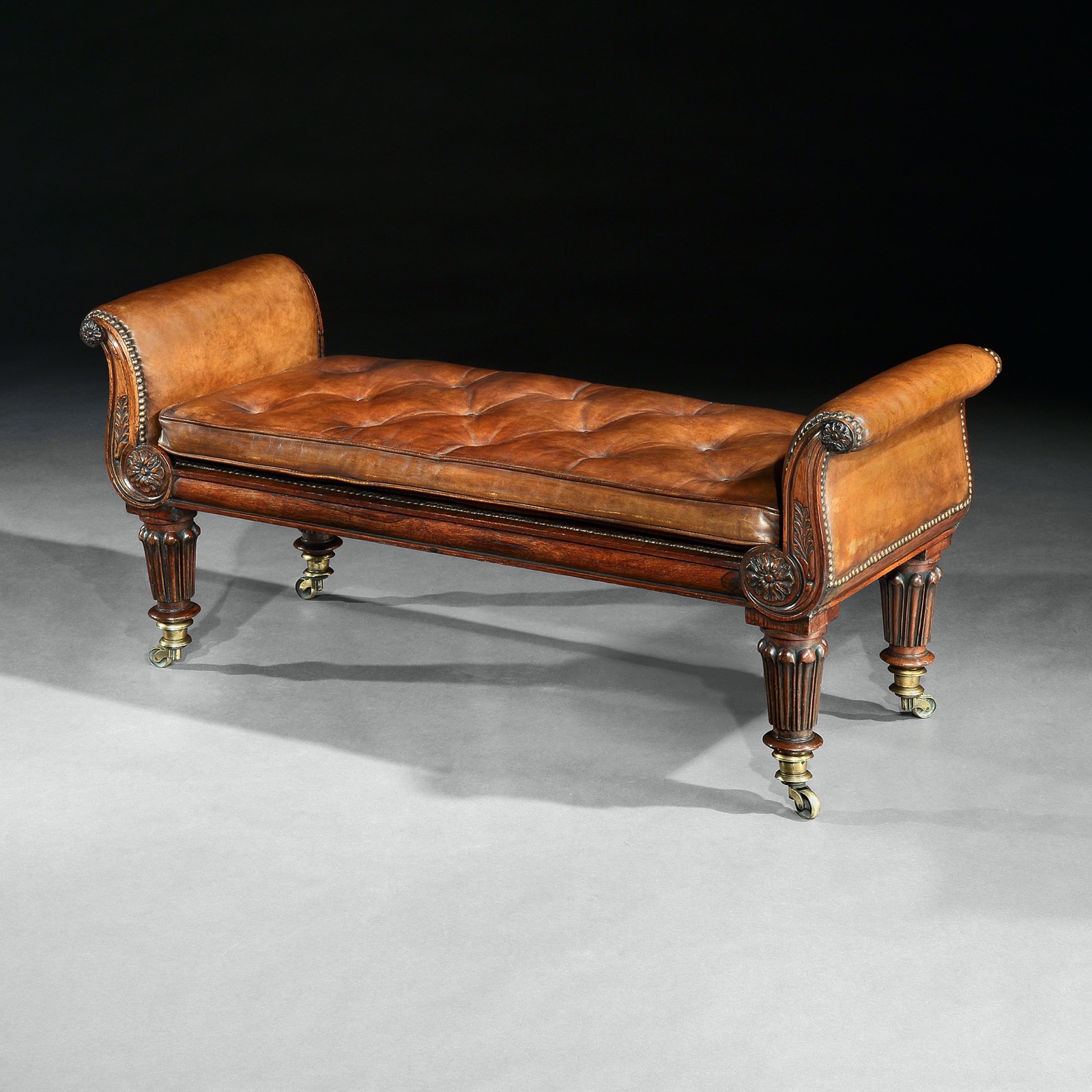 Fine Rosewood Leather Upholstered Window Seat (1 of 6)