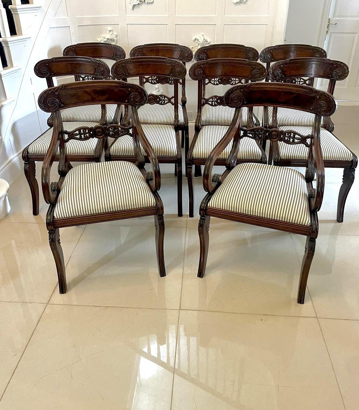 Fine Set of 10 Antique Regency Quality Carved Mahogany Dining Chairs