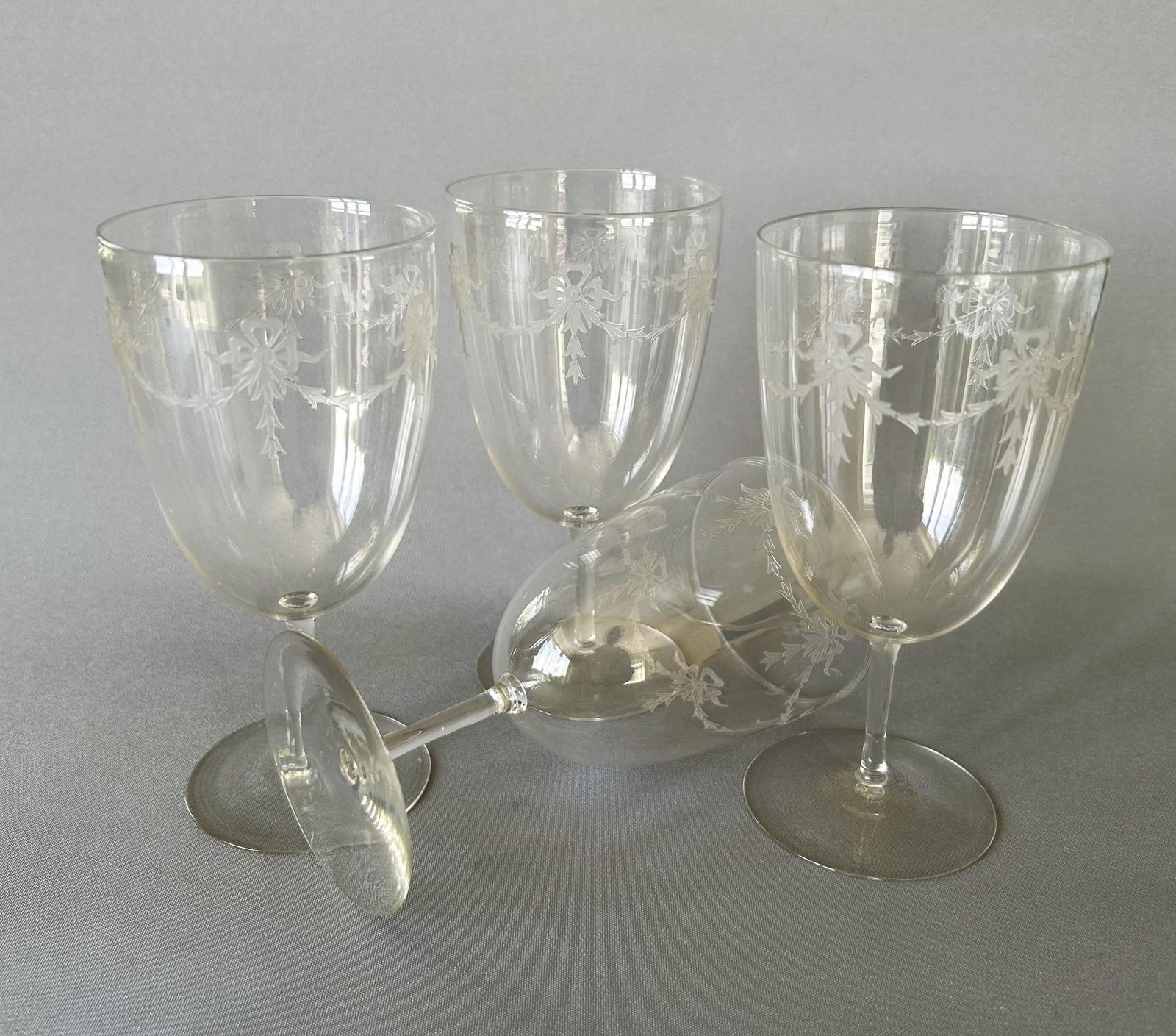 Set of 6 Edwardian Greek Key Etched Lemonade / Water Glasses