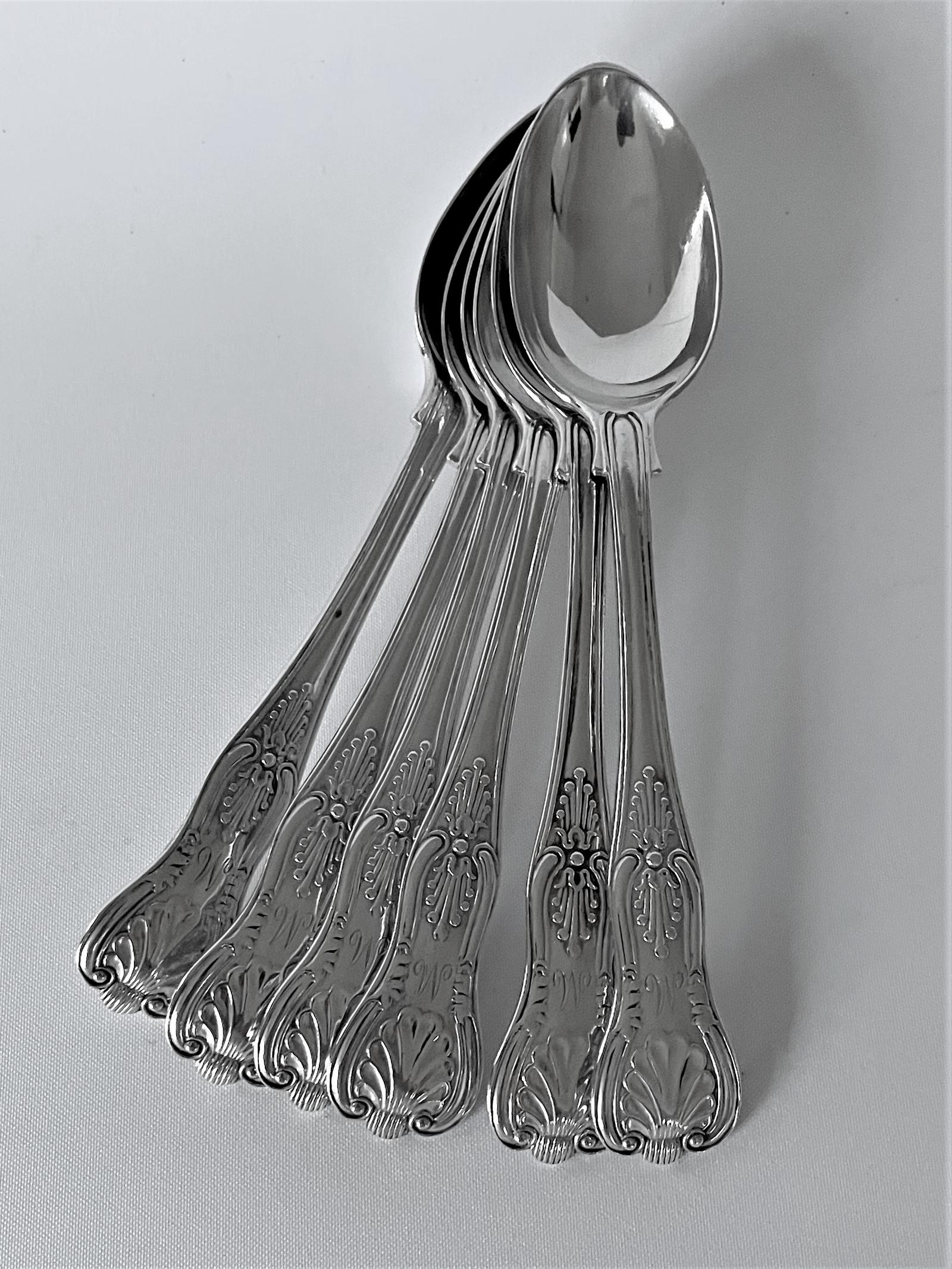 Fine Set of 6 Kings Pattern Victorian Silver Teaspoons