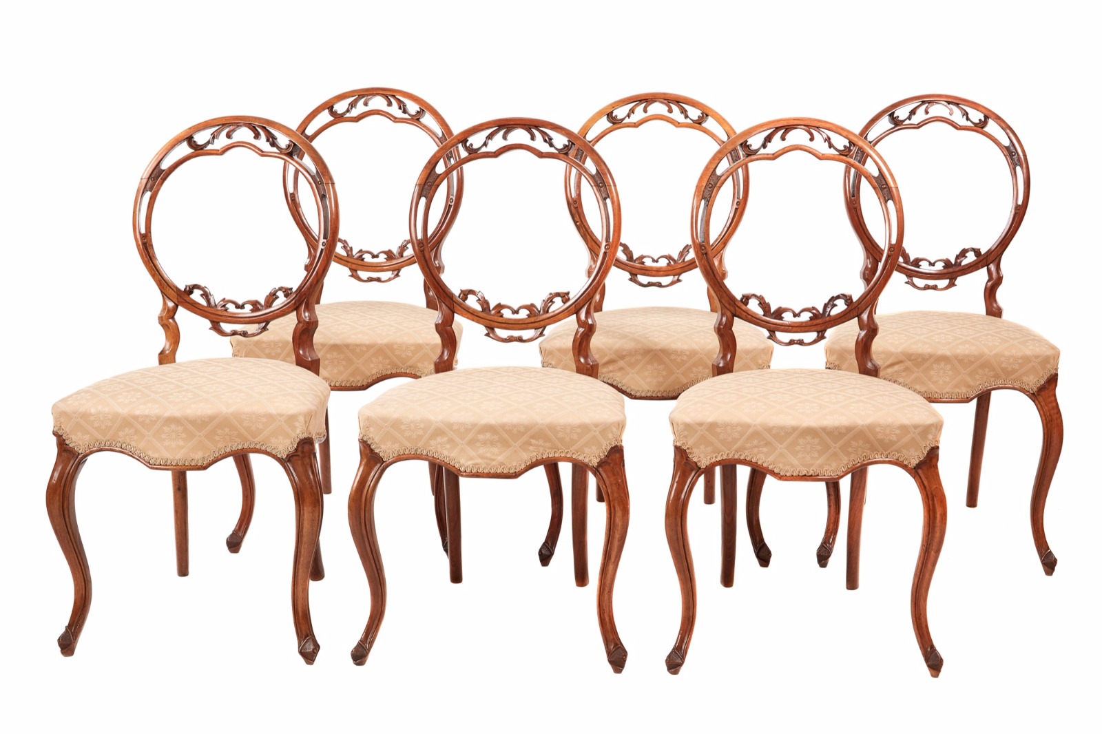 Fine Set of 6 Victorian Walnut Dining Chairs c.1850