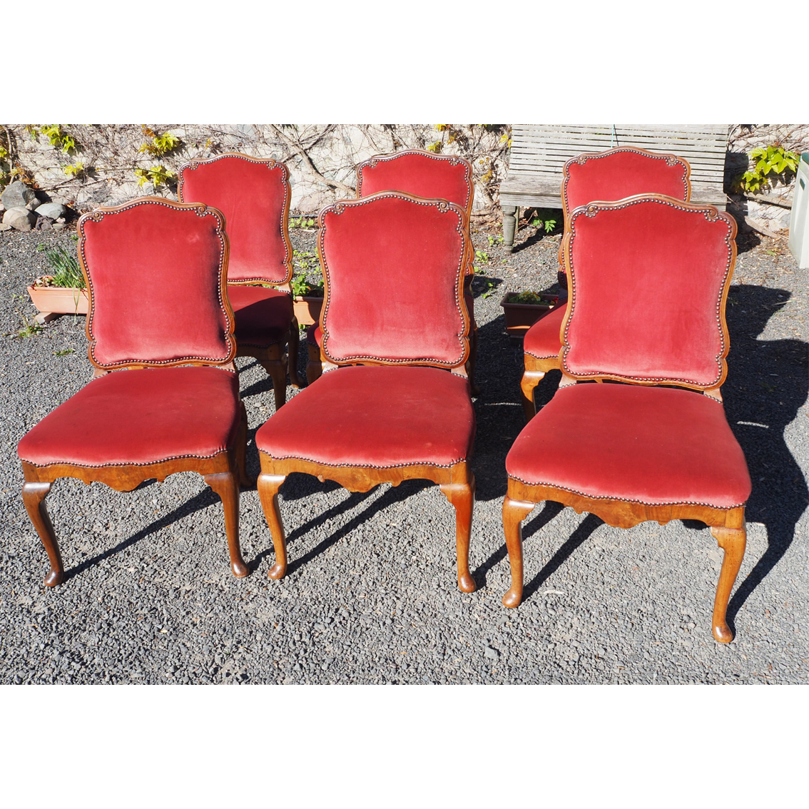 Fine Set of 6 Walnut Cabriole Leg Salon Chairs c.1860 (1 of 1)